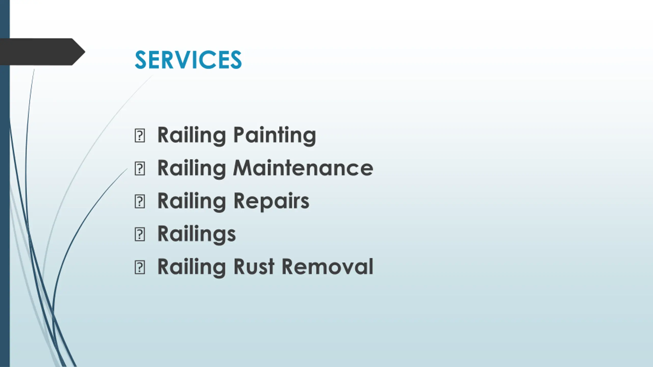 SERVICES ? Railing Painting ? Railing Maintenance ? Railing Repairs ? Railings ? Railing Rust Removal