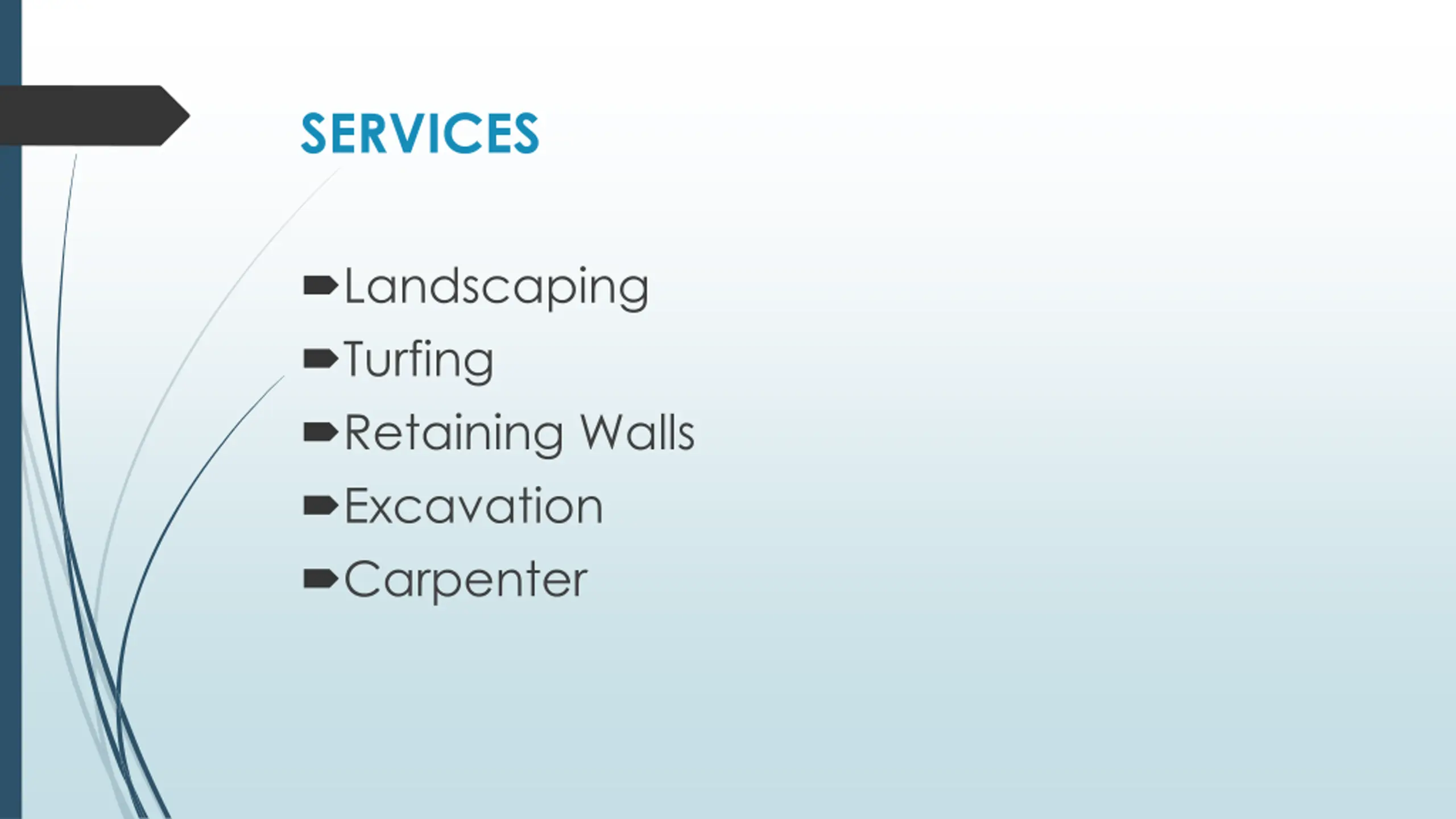 SERVICES Landscaping Turfing Retaining Walls Excavation Carpenter