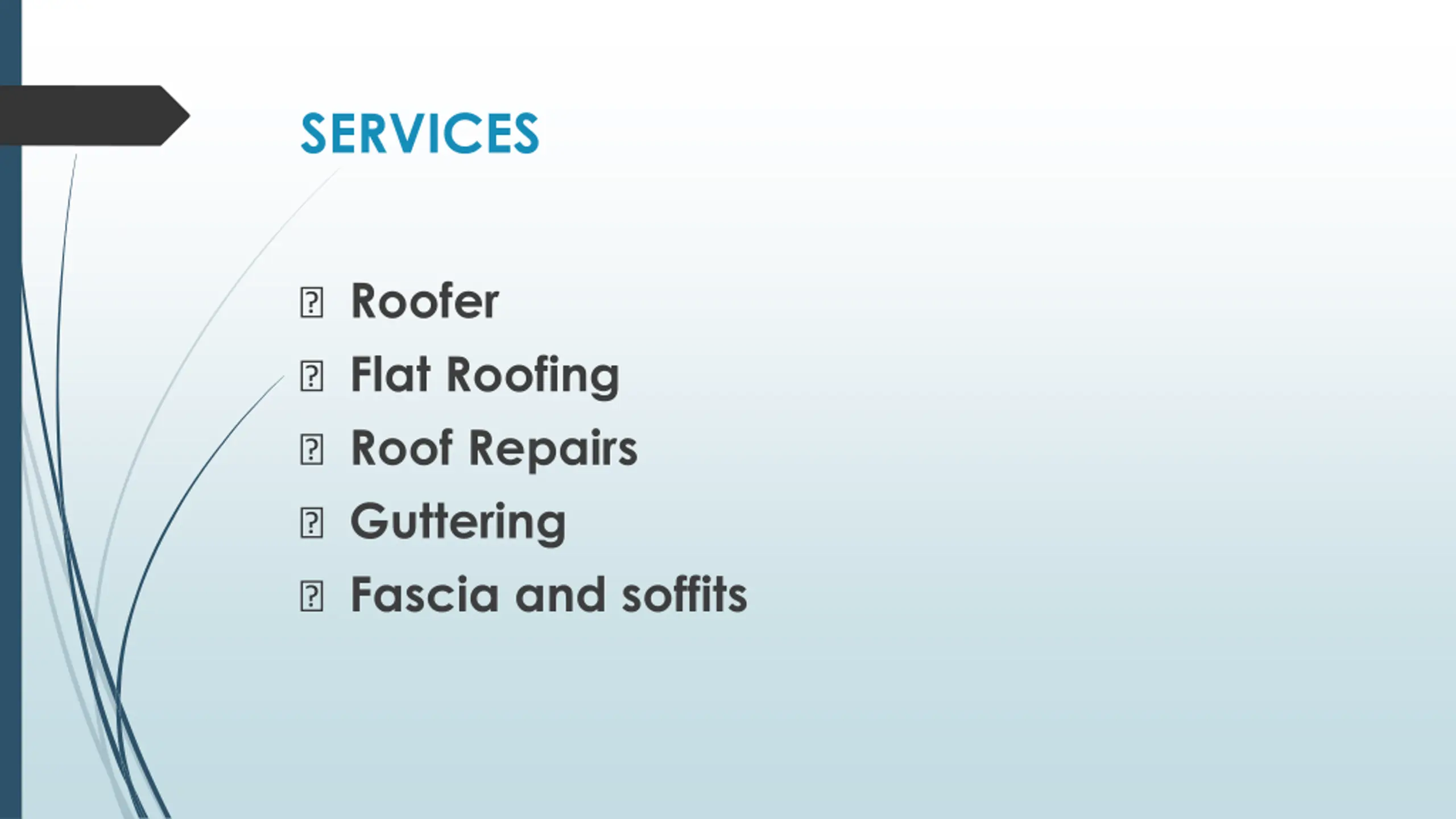 SERVICES ? Roofer ? Flat Roofing ? Roof Repairs ? Guttering ? Fascia and soffits