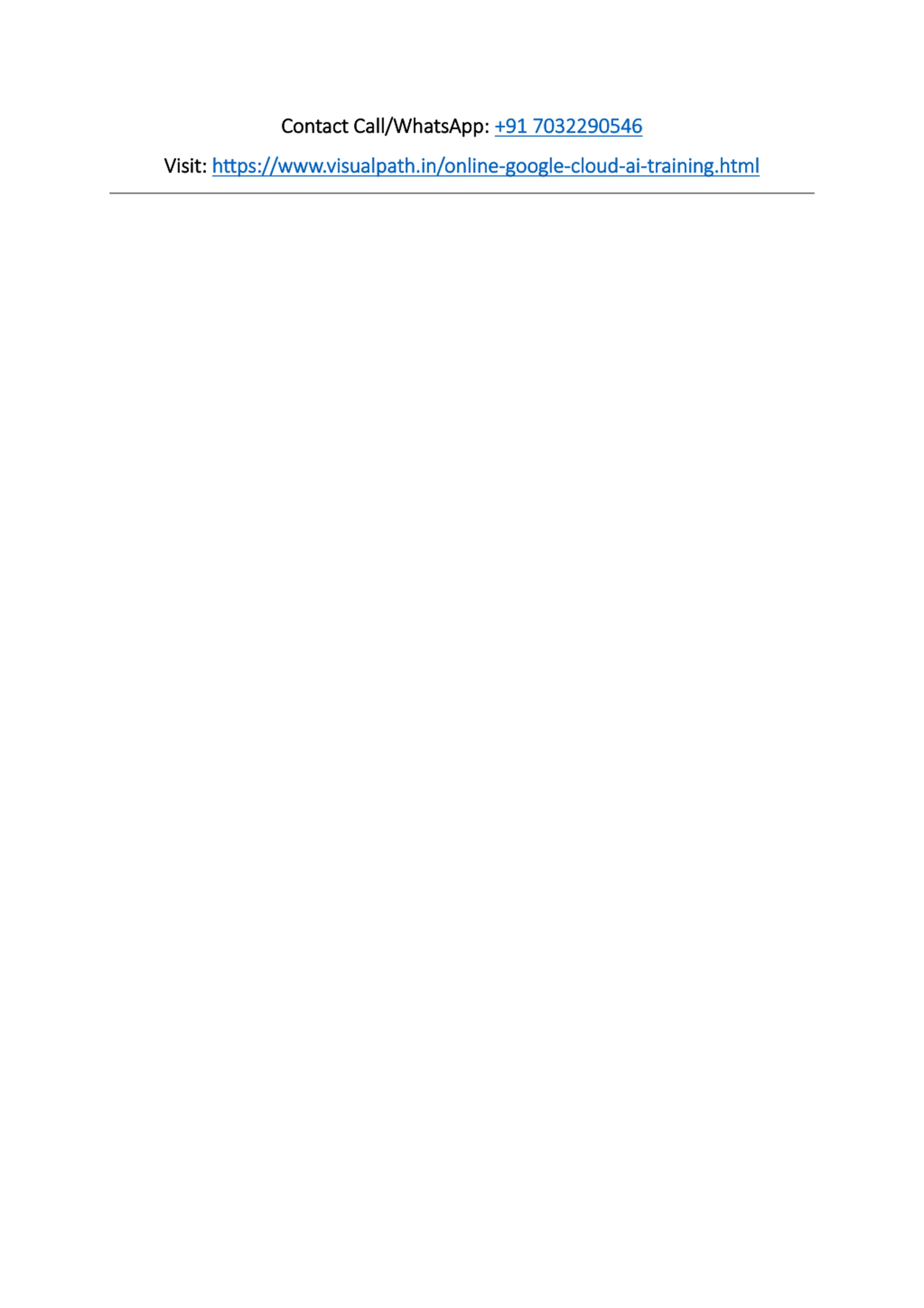 Contact Call/WhatsApp: Contact Call/WhatsApp: +91 7032290546 +91 7032290546 Visit: Visit: https://www.visualpath.in/online https://www.visualpath.in/online- -google google- -cloud cloud- -ai ai- -training.html training.html