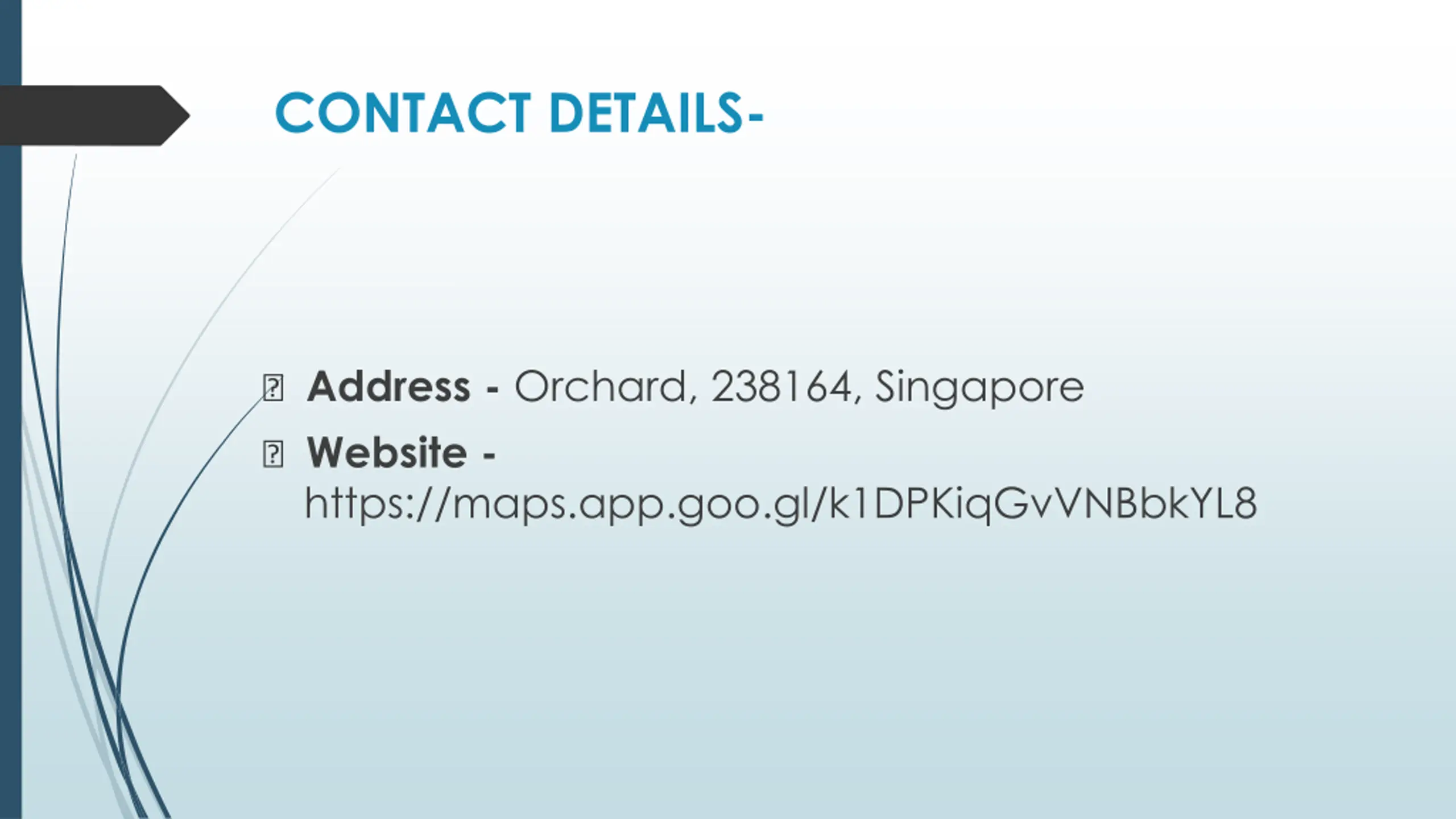 CONTACT DETAILS- ? Address - Orchard, 238164, Singapore ? Website - https://maps.app.goo.gl/k1DPKiqGvVNBbkYL8