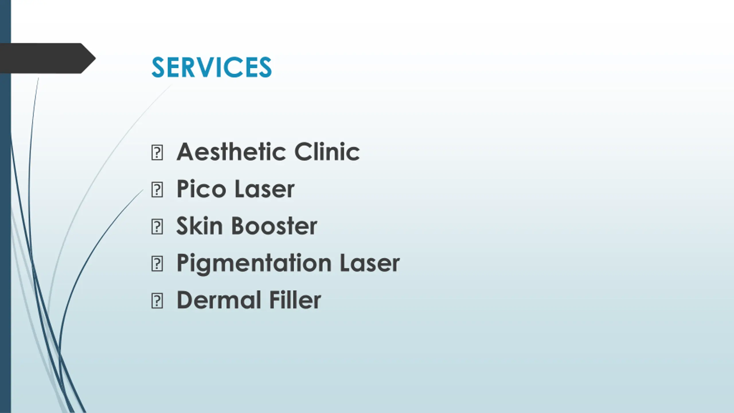 SERVICES ? Aesthetic Clinic ? Pico Laser ? Skin Booster ? Pigmentation Laser ? Dermal Filler