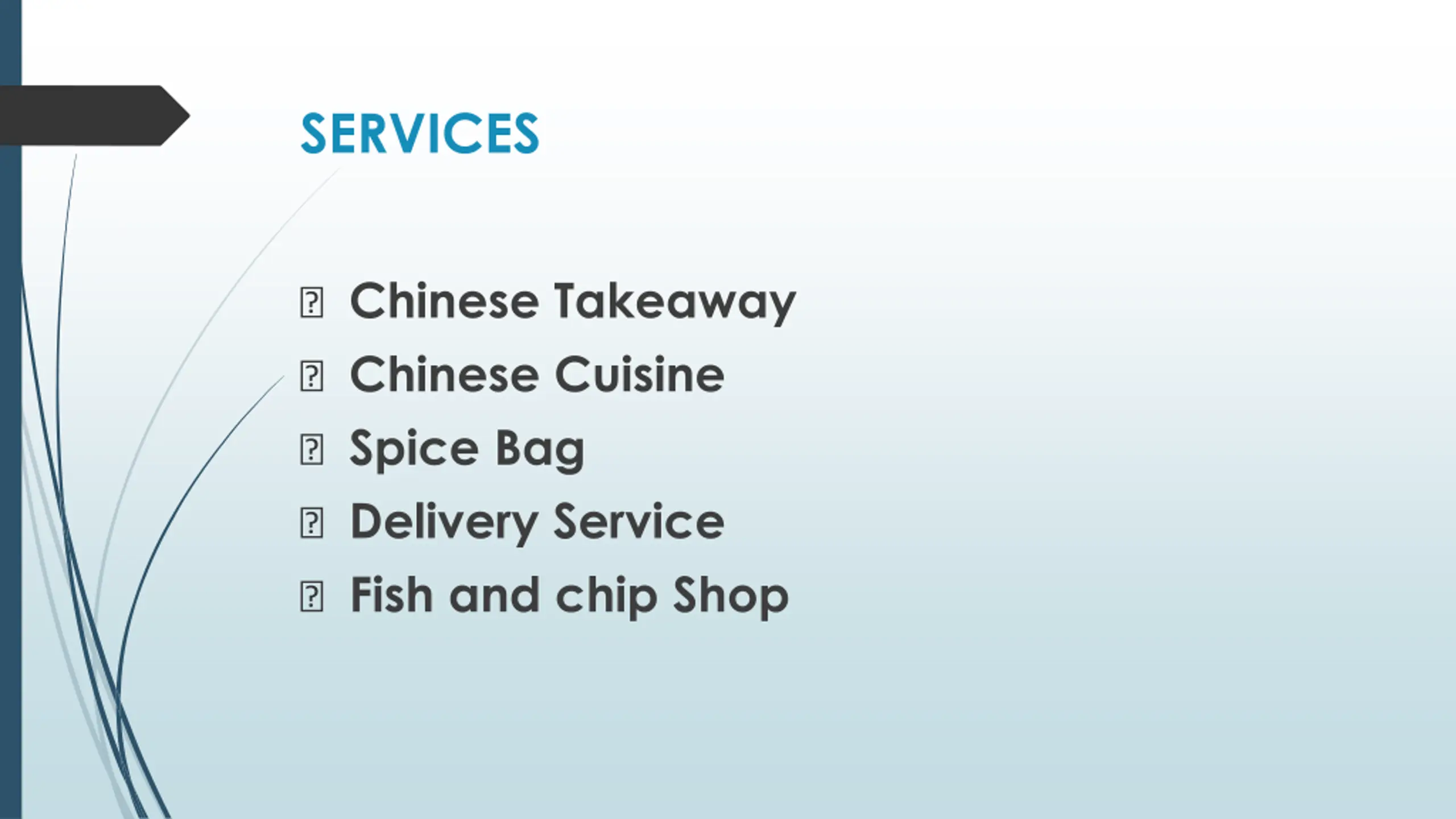 SERVICES ? Chinese Takeaway ? Chinese Cuisine ? Spice Bag ? Delivery Service ? Fish and chip Shop