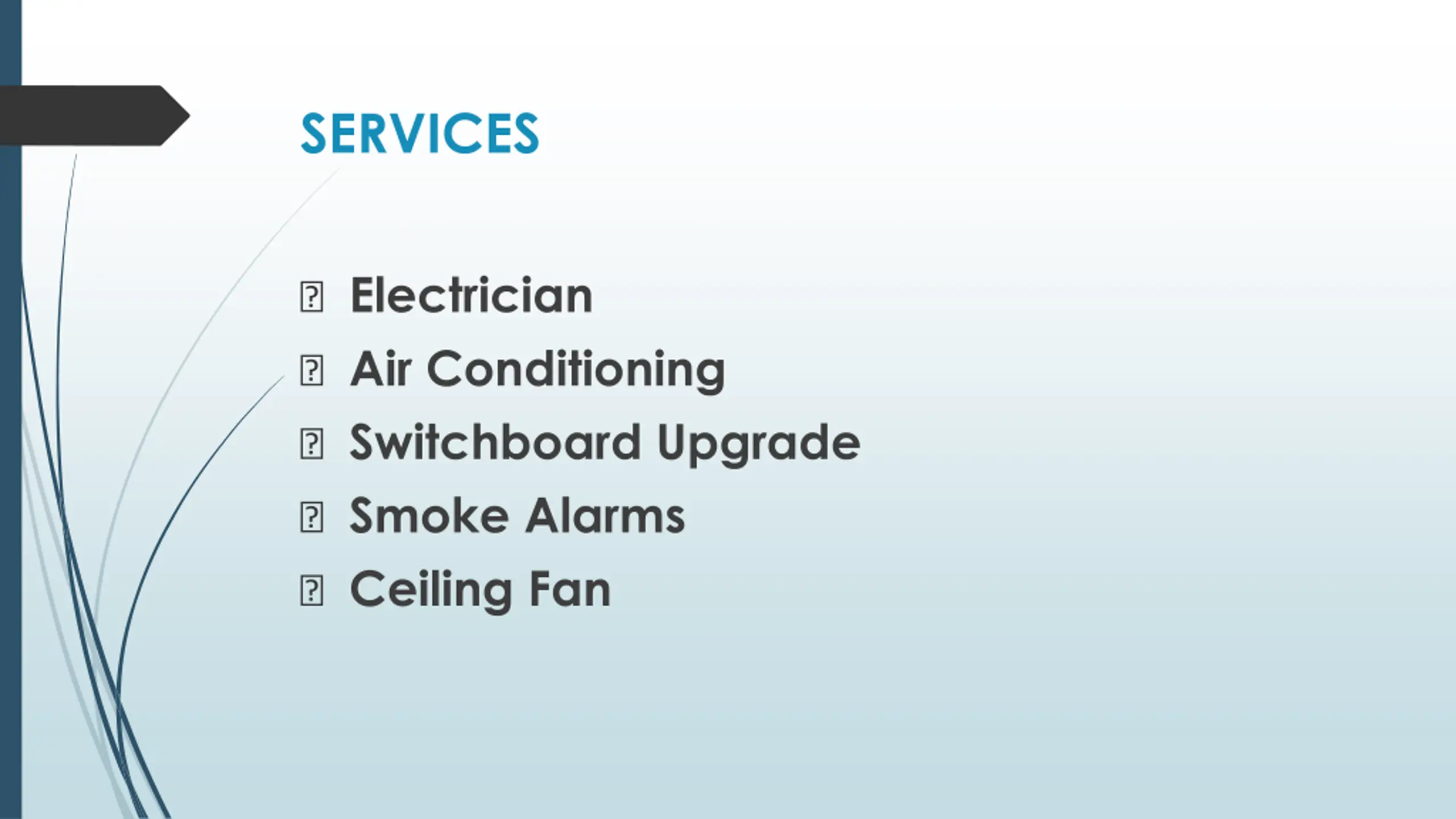 SERVICES ? Electrician ? Air Conditioning ? Switchboard Upgrade ? Smoke Alarms ? Ceiling Fan