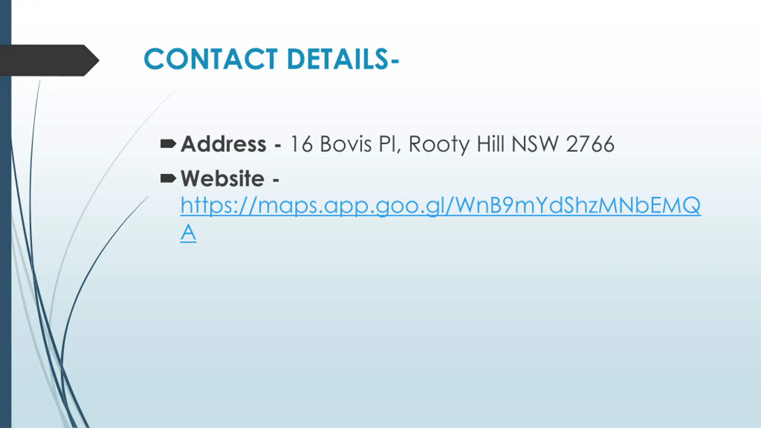 CONTACT DETAILS- Address - 16 Bovis Pl, Rooty Hill NSW 2766 Website - https://maps.app.goo.gl/WnB9mYdShzMNbEMQ A