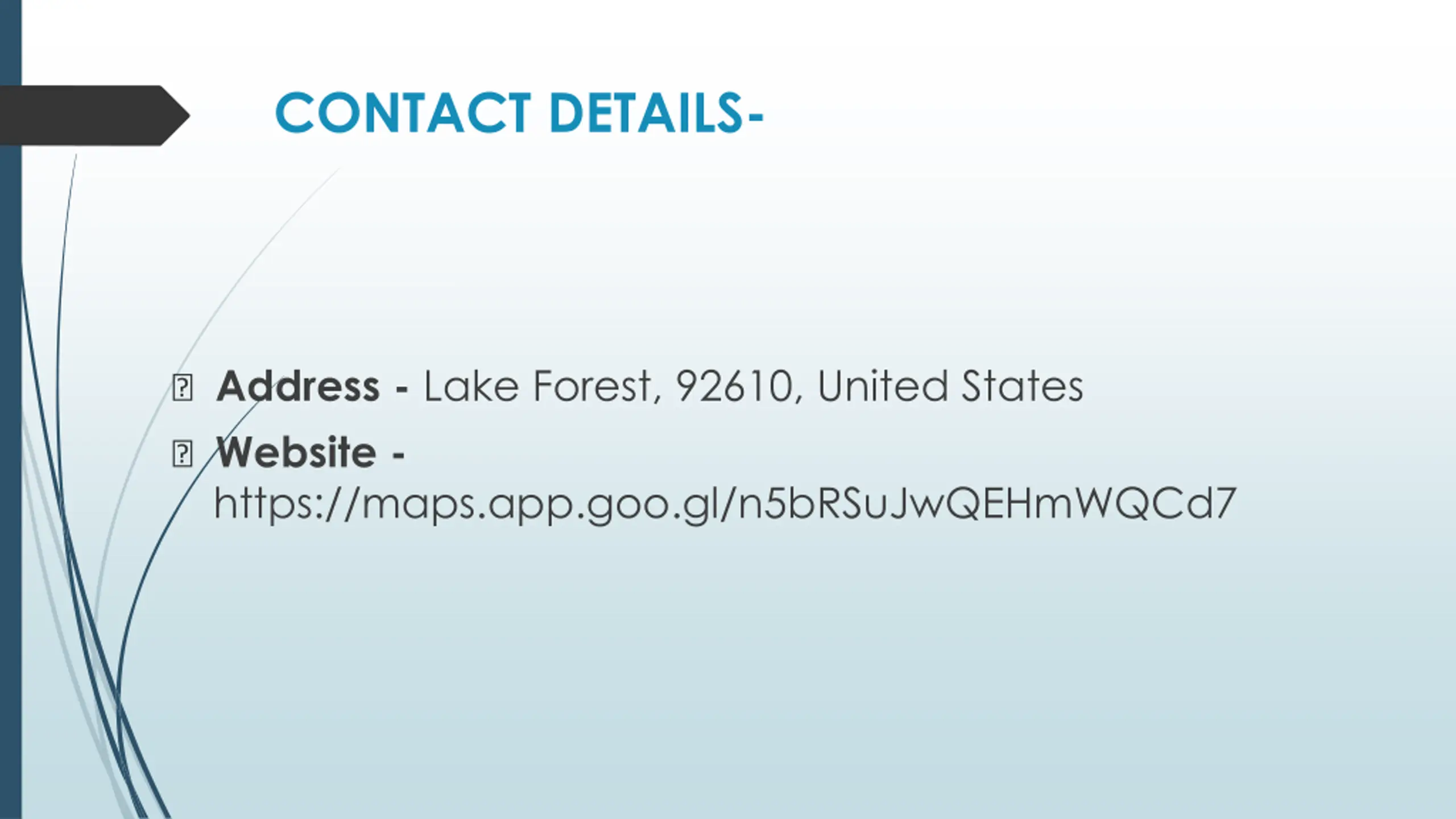 CONTACT DETAILS- ? Address - Lake Forest, 92610, United States ? Website - https://maps.app.goo.gl/n5bRSuJwQEHmWQCd7