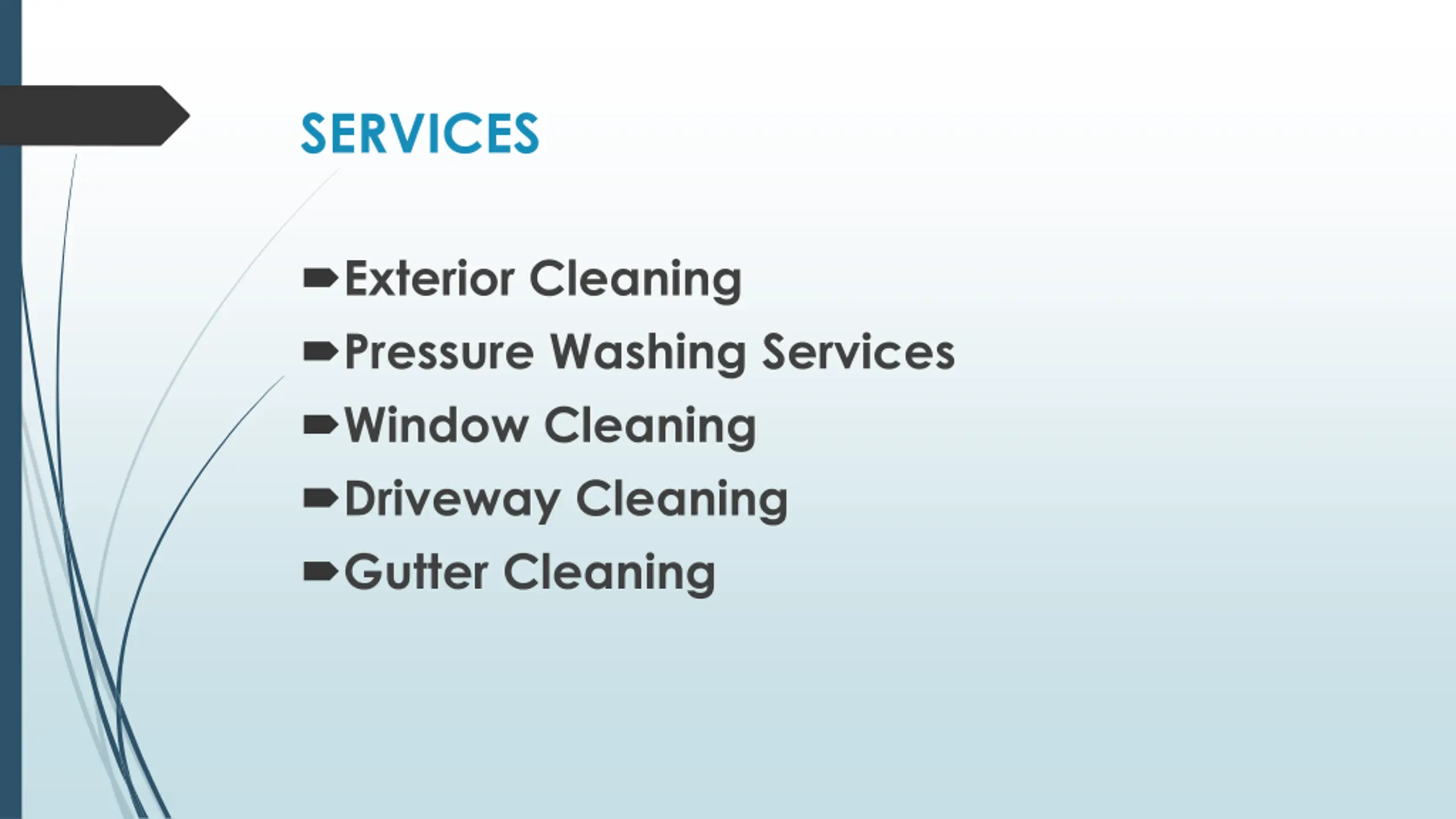 SERVICES Exterior Cleaning Pressure Washing Services Window Cleaning Driveway Cleaning Gutter Cleaning