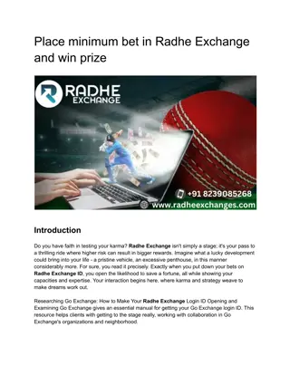 Secure and Straightforward: Your wellbeing and security are our first concerns. With cutting edge encryption innovation and straightforward arrangements, you can bet with certainty, it is constantly safeguarded to know that your data. day in and day out Client care: Have an inquiry or need help? Our devoted client care group is accessible all day, every day to furnish you with immediate and proficient help, guaranteeing that your betting experience is smooth and bother free. Try not to pass up the fervor - join Radhe Exchange today and submerge yourself in the zapping universe of online cricket betting. With vast chances to win large and an unrivaled betting experience, Radhe Exchange is your final location for cricket betting greatness. Join now and begin your series of wins with Radhe Exchange! Have an inquiry or need help? Our devoted client care group is accessible every minute of every day to assist you with any issues you might experience. Whether you favor live talk, email, or telephone support, we're here to guarantee that your involvement in Radheexch ID is absolutely remarkable. Live betting: Experience the adventure of live betting more than ever with Radhe Exchange ID. Our constant chances and intuitive connection point make it simple to put down wagers on your #1 game as they unfurl. With only a couple of snaps, you can join the activity and possibly win large. Extensive variety of Business sectors: From football and b-ball to cricket and tennis, we offer a different scope of betting markets to suit each inclination. Whether you're an old pro or a relaxed fan, you'll track down a lot of chances to test your abilities and forecasts on Radhe Exchange ID. Responsive Client assistance: Have an inquiry or need help? Our devoted client care group is accessible all day, every day to assist you with any issues you might experience. Whether you favor live talk, email, or telephone support, we're here to guarantee that your involvement in Radhe Exchange ID is completely uncommon.