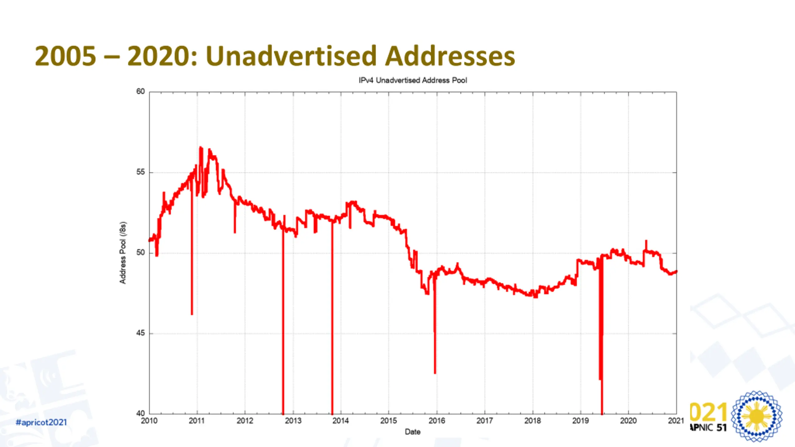 2019: Assigned vs Recovered Change in the Unadvertised Address Pool 16.5M advertised RIR Allocations 2.3M allocated 14.5M recovered Change in Advertised Addresses