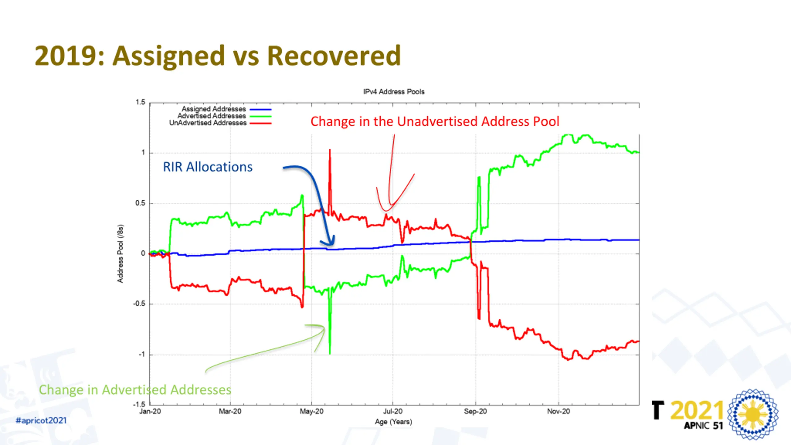 2019: Assigned vs Recovered Change in the Unadvertised Address Pool RIR Allocations Change in Advertised Addresses