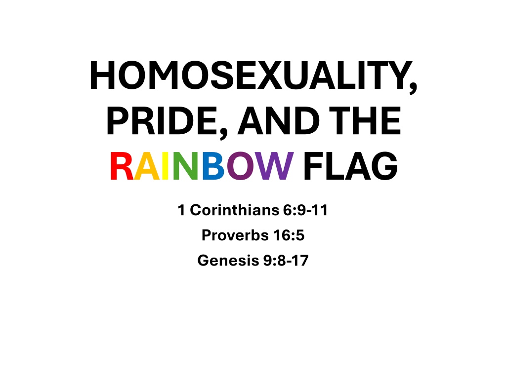 HOMOSEXUALITY, PRIDE, AND THE RAINBOWFLAG 1 Corinthians 6:9-11 Proverbs 16:5 Genesis 9:8-17