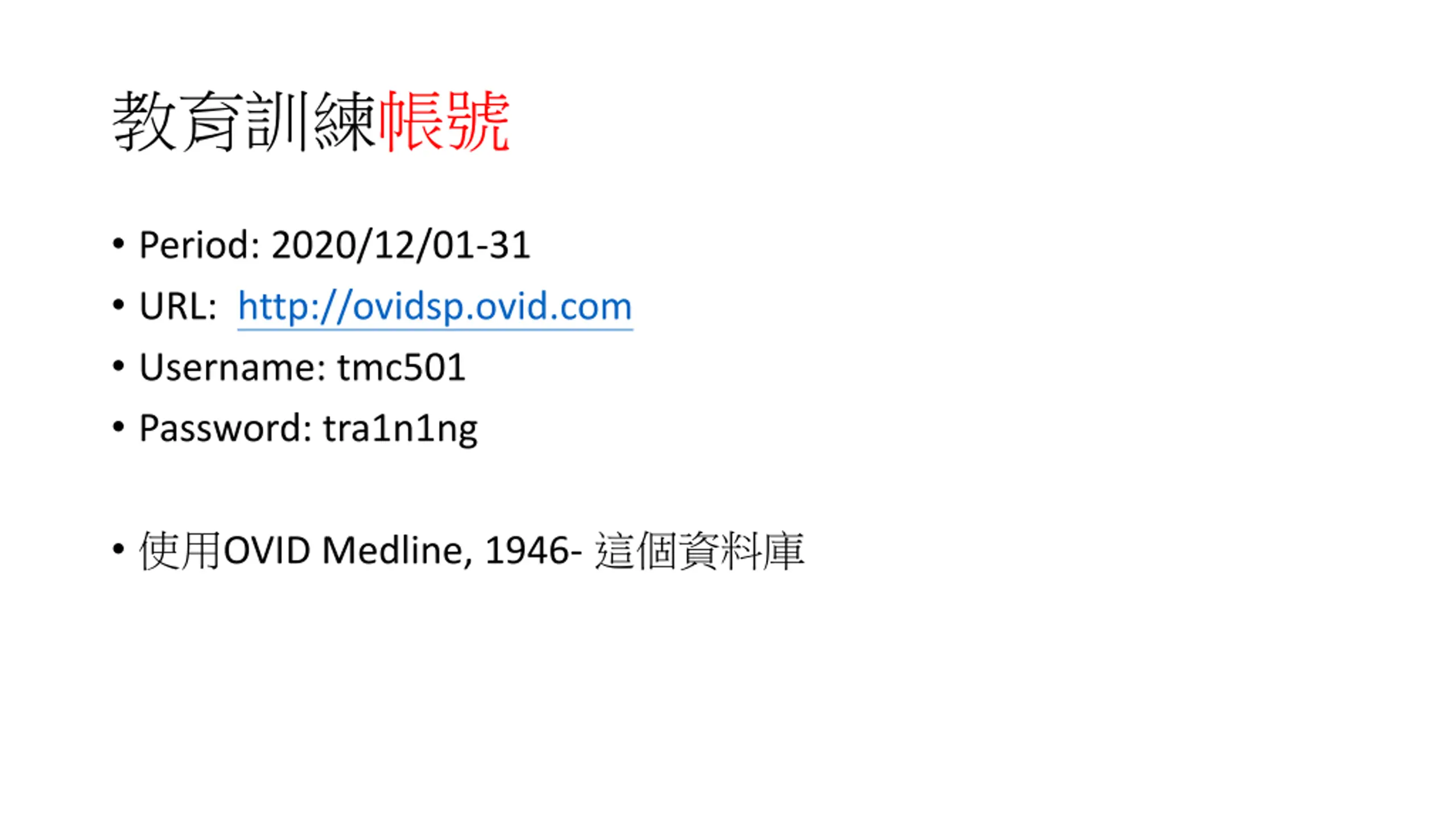 Period: 2020/12/01-31 URL: http://ovidsp.ovid.com Username: tmc501 Password: tra1n1ng OVID Medline, 1946-