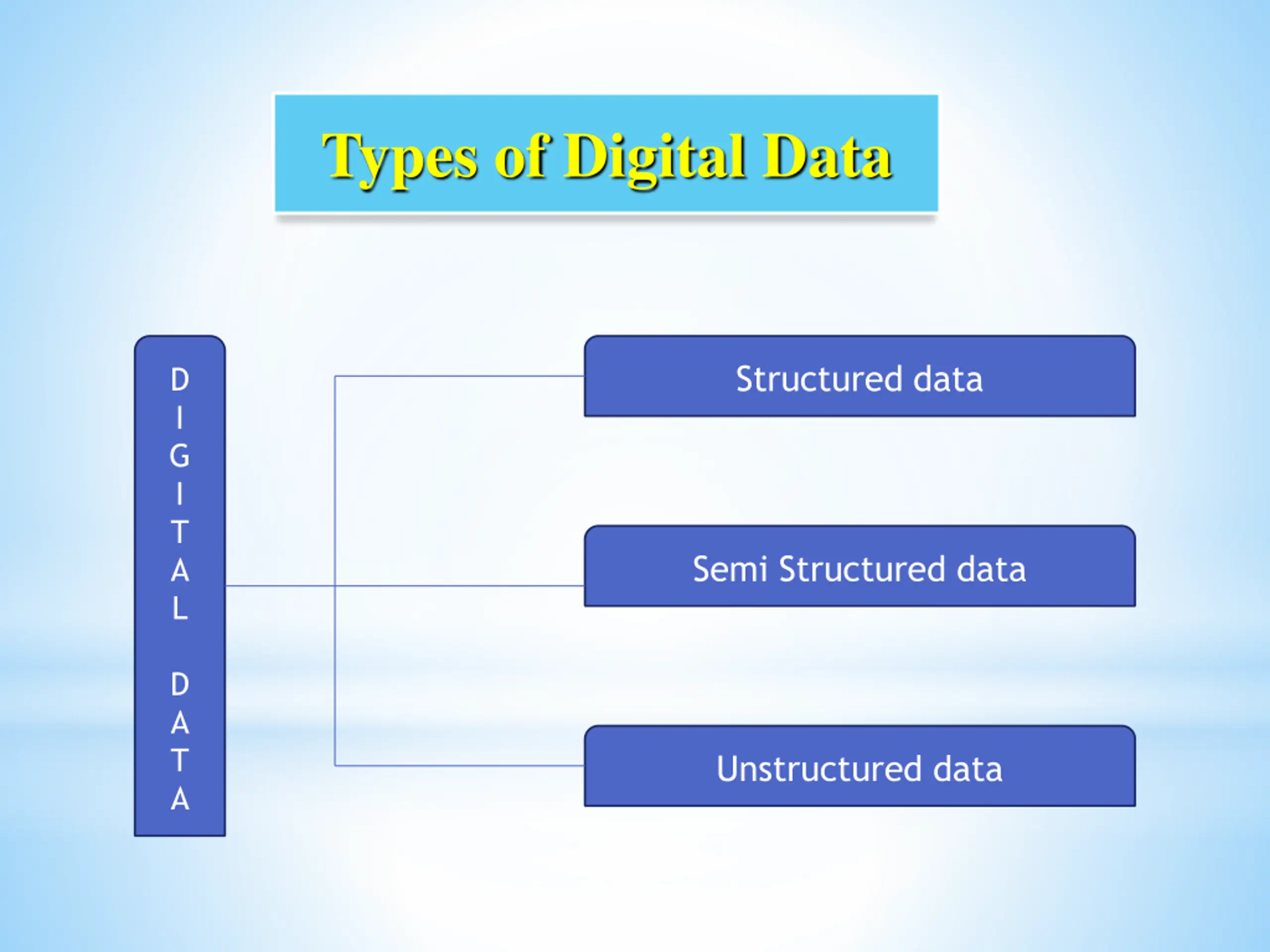 Types of Digital Data Structured data D I G I T A L Semi Structured data D A T A Unstructured data