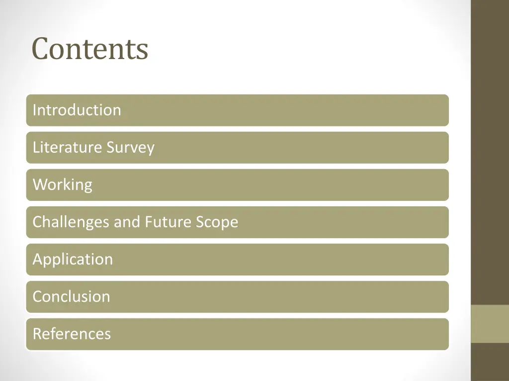 Contents Introduction Literature Survey Working Challenges and Future Scope Application Conclusion References