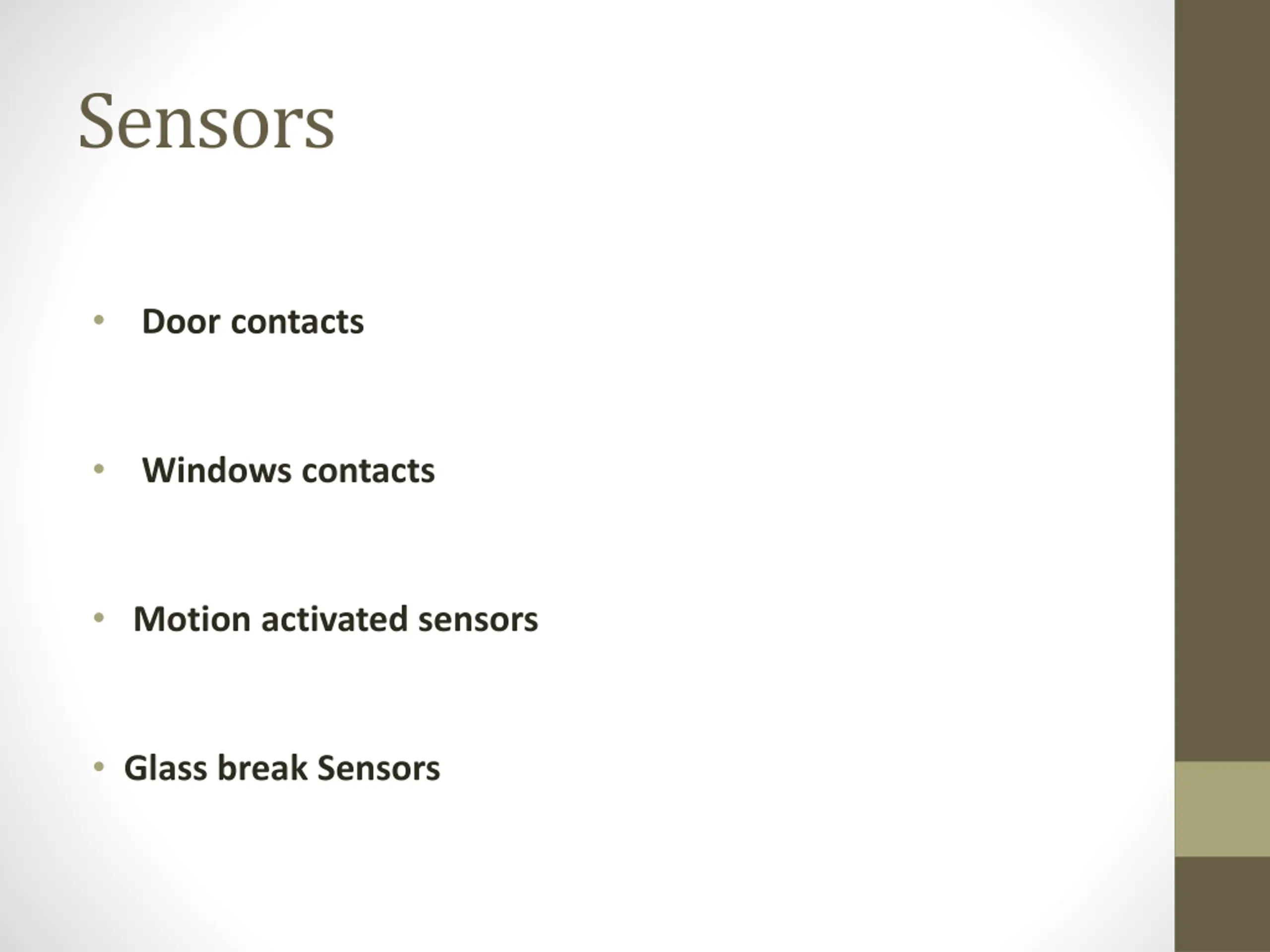 Sensors Door contacts Windows contacts Motion activated sensors Glass break Sensors