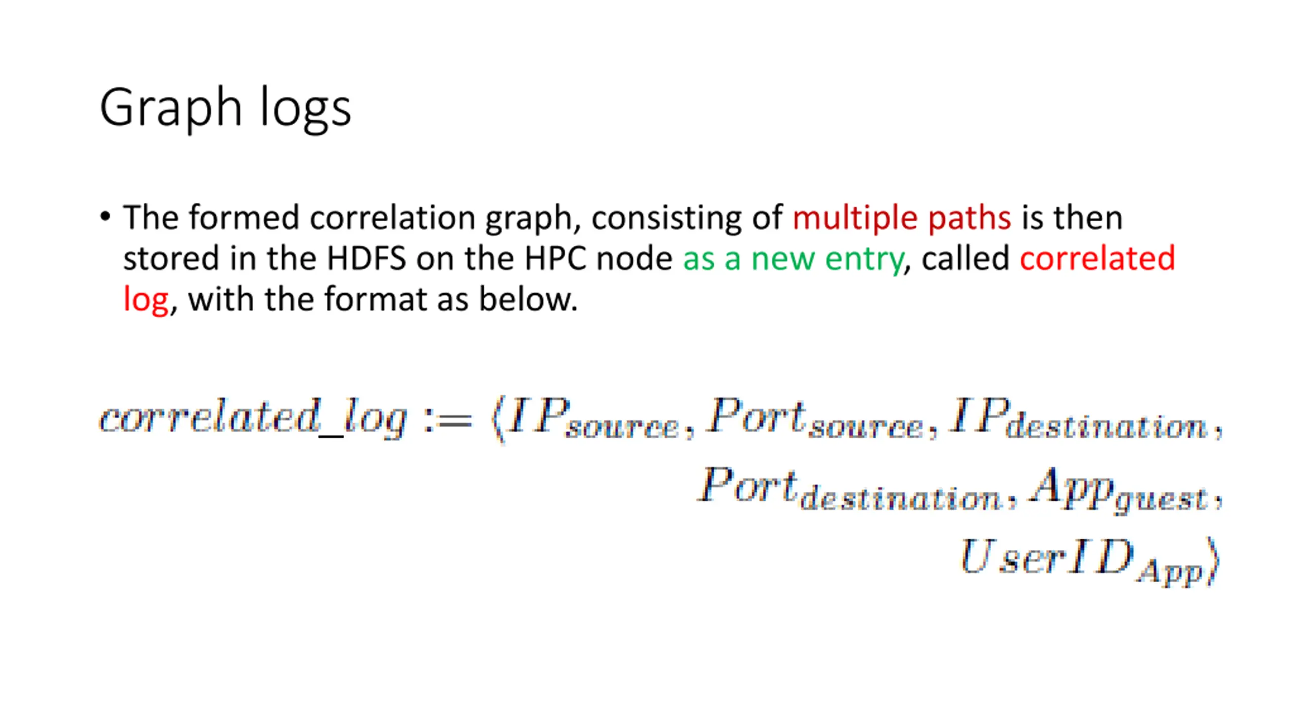 Graph logs The formed correlation graph, consisting of multiple paths is then stored in the HDFS on the HPC node as a new entry, called correlated log, with the format as below.