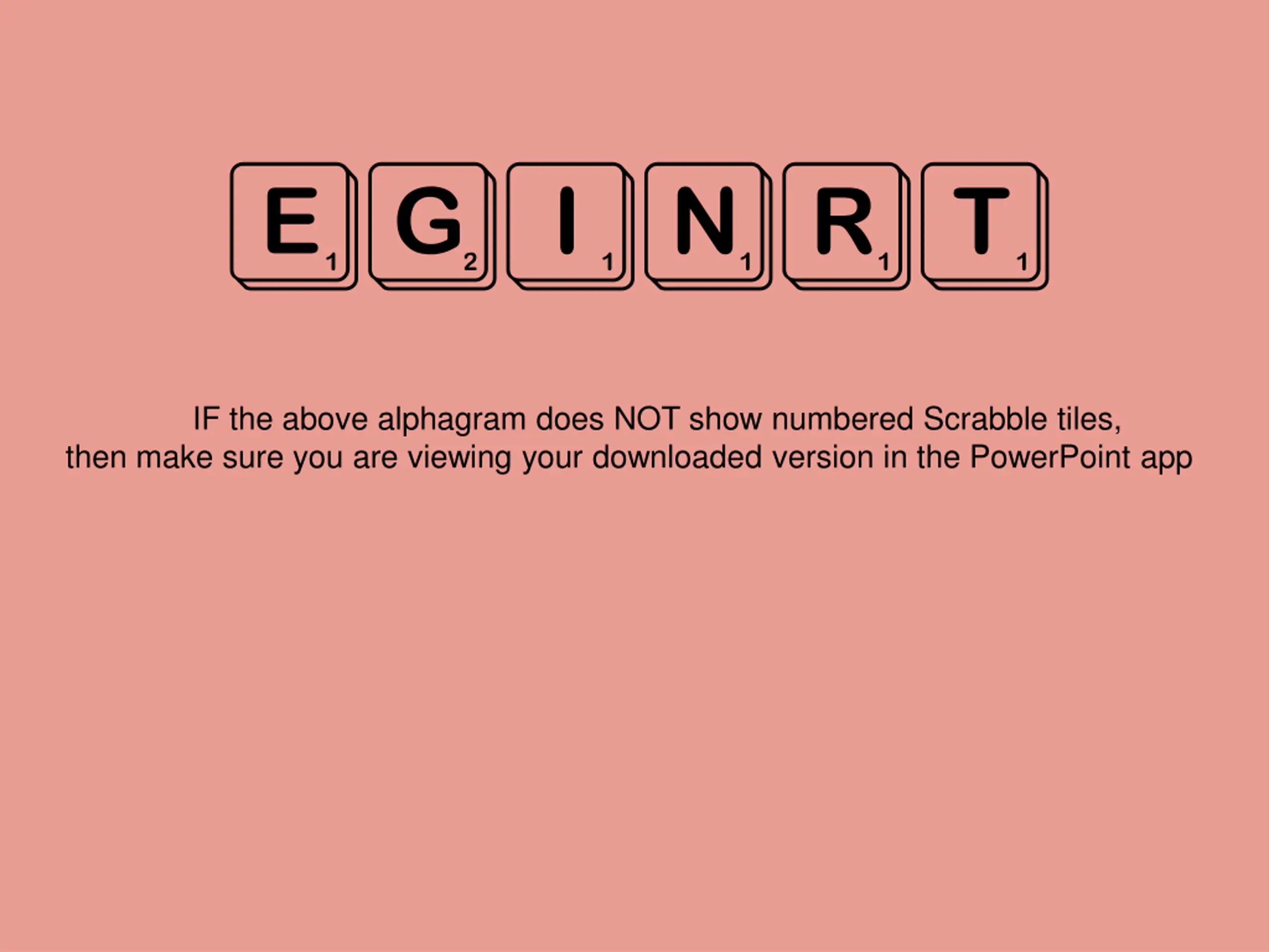 EGINRT IF the above alphagram does NOT show numbered Scrabble tiles, then make sure you are viewing your downloaded version in the PowerPoint app