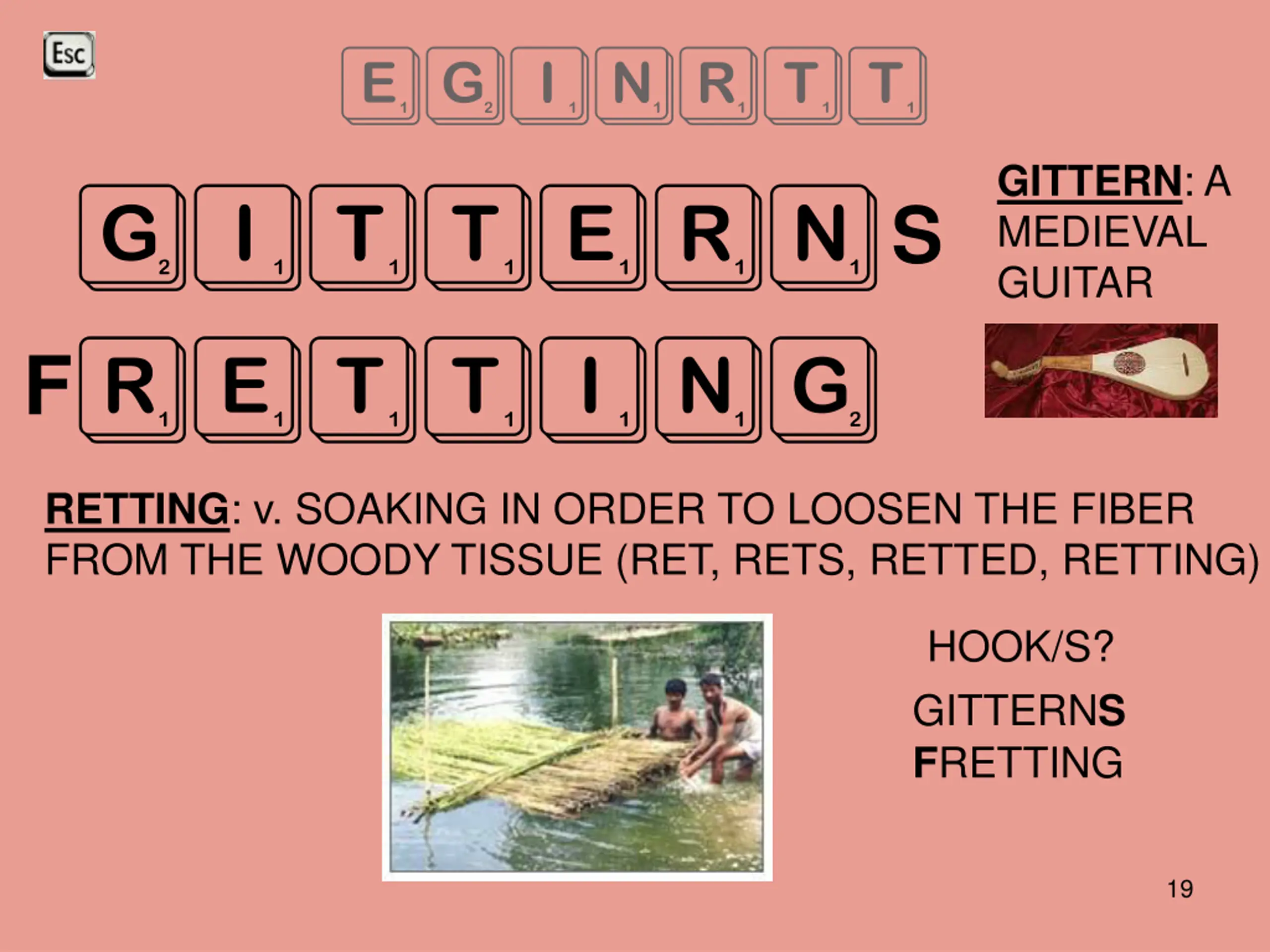 EGINRTT GITTERN: A MEDIEVAL GUITAR GITTERN RETTING S F RETTING: v. SOAKING IN ORDER TO LOOSEN THE FIBER FROM THE WOODY TISSUE (RET, RETS, RETTED, RETTING) HOOK/S? GITTERNS FRETTING 19