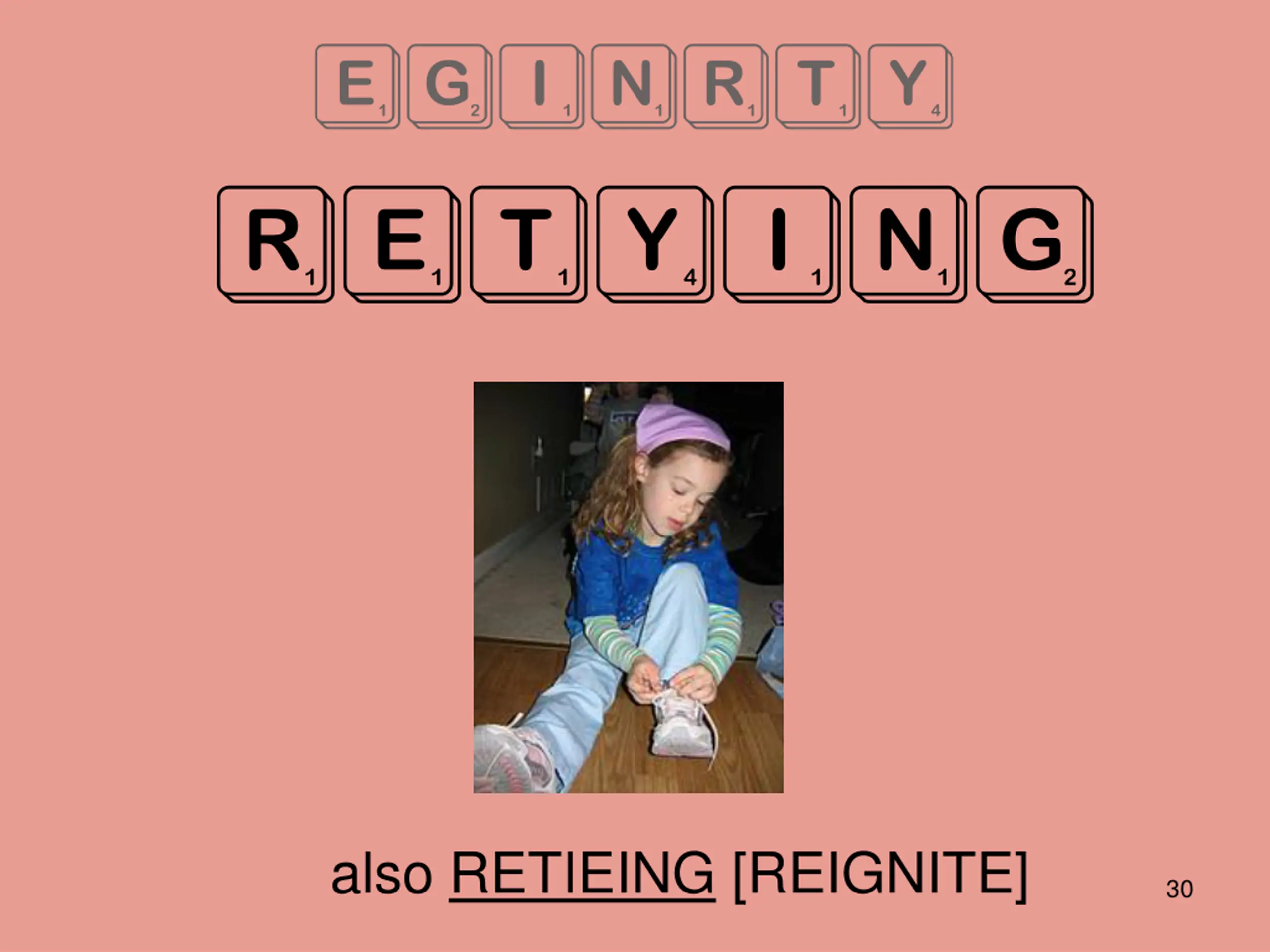EGINRTY RETYING also RETIEING [REIGNITE] 30