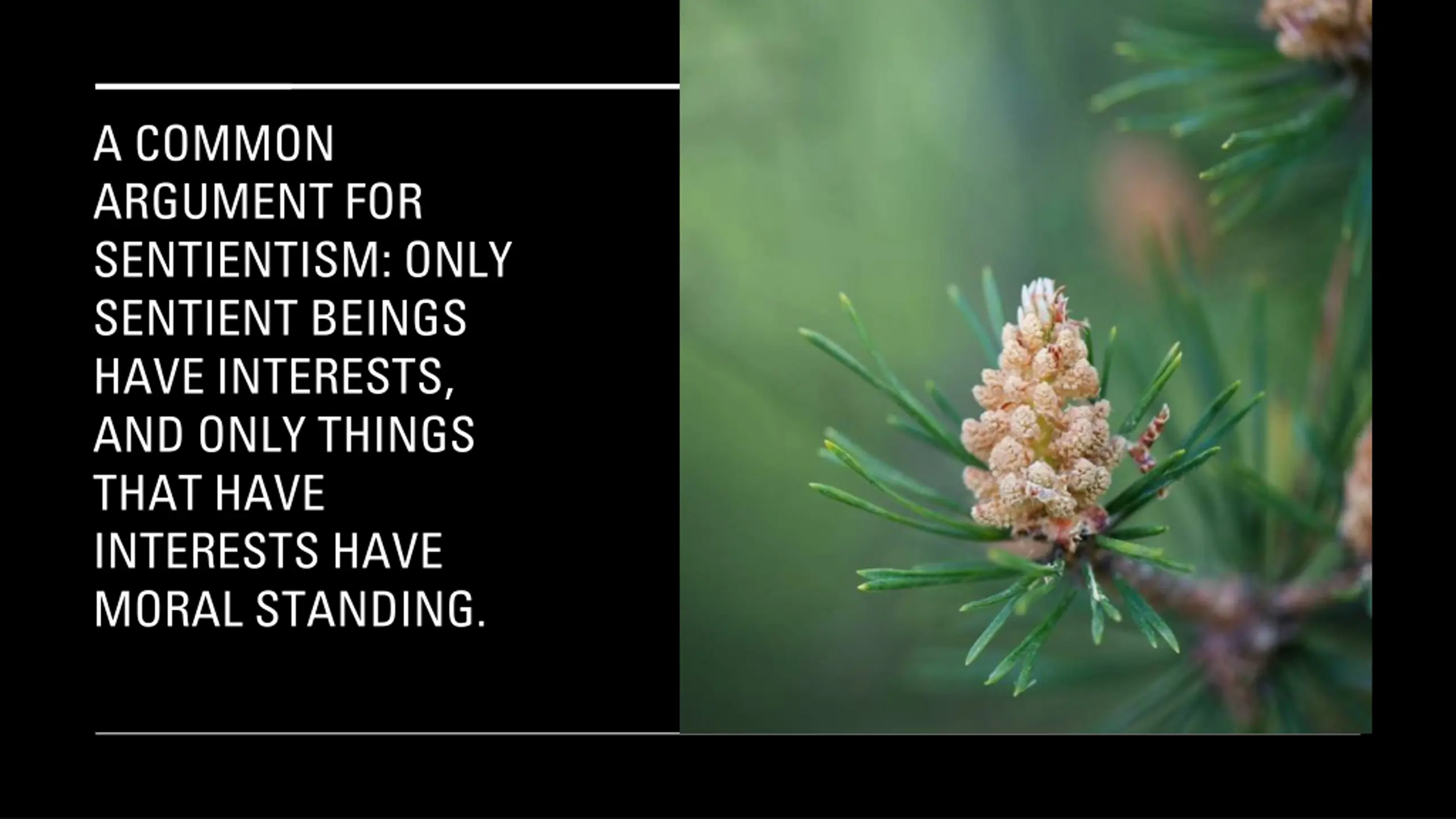 A COMMON ARGUMENT FOR SENTIENTISM: ONLY SENTIENT BEINGS HAVE INTERESTS, AND ONLY THINGS THAT HAVE INTERESTS HAVE MORAL STANDING.