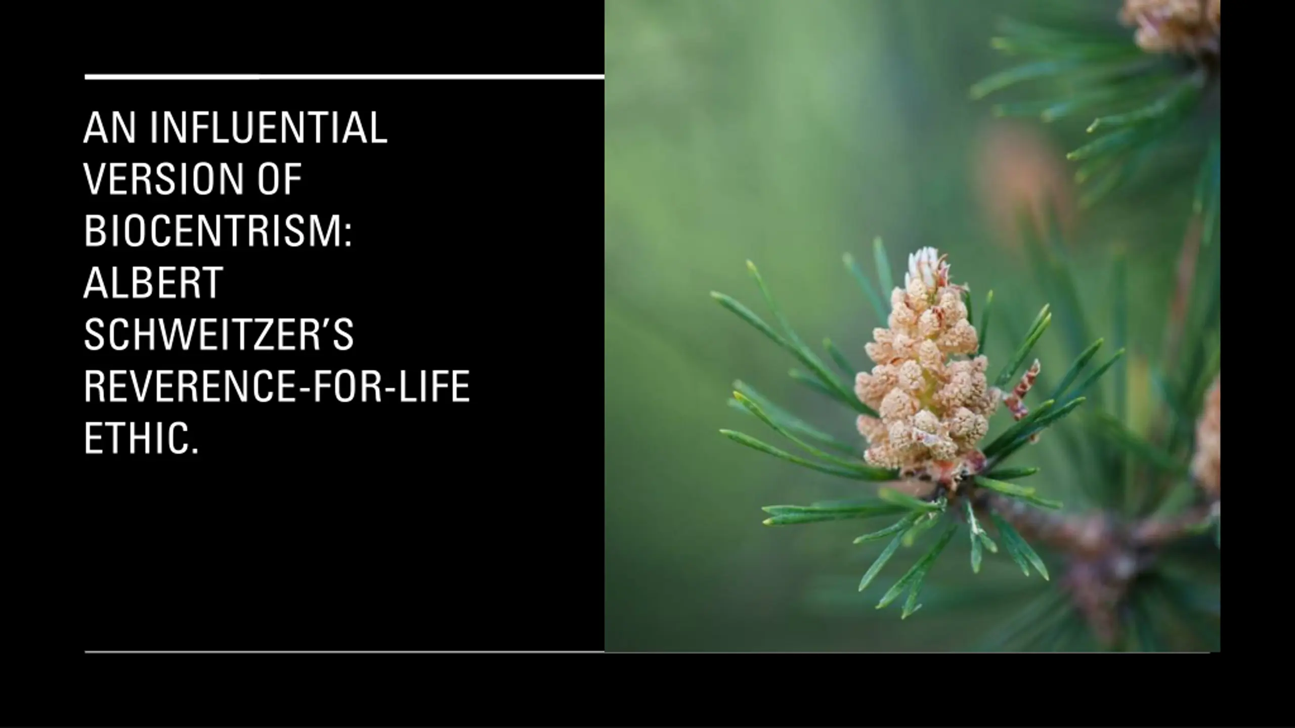 Biocentrism posits that all living things have moral standing, deserving consideration and respect. It challenges the view of sentientism by questioning the interests of nonsentient beings like redwood trees and suggesting intrinsic value as a basis for moral standing. Albert Schweitzer's Reverence-for-Life ethic advocates valuing and revering all life forms due to their will to live and self-preservation. However, issues arise regarding the will-to-live in all living things, including nonsentient entities, and the assessment of their value compared to human life.