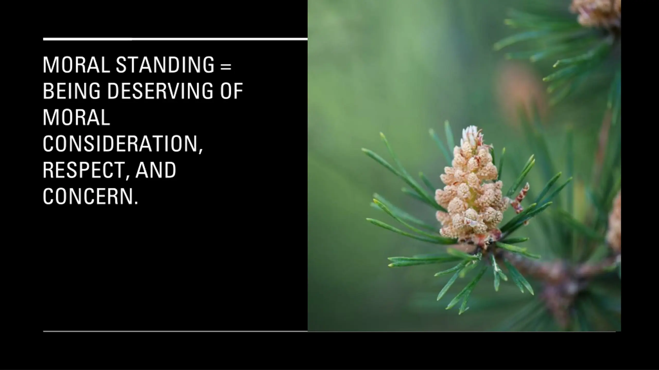 MORAL STANDING = BEING DESERVING OF MORAL CONSIDERATION, RESPECT, AND CONCERN.