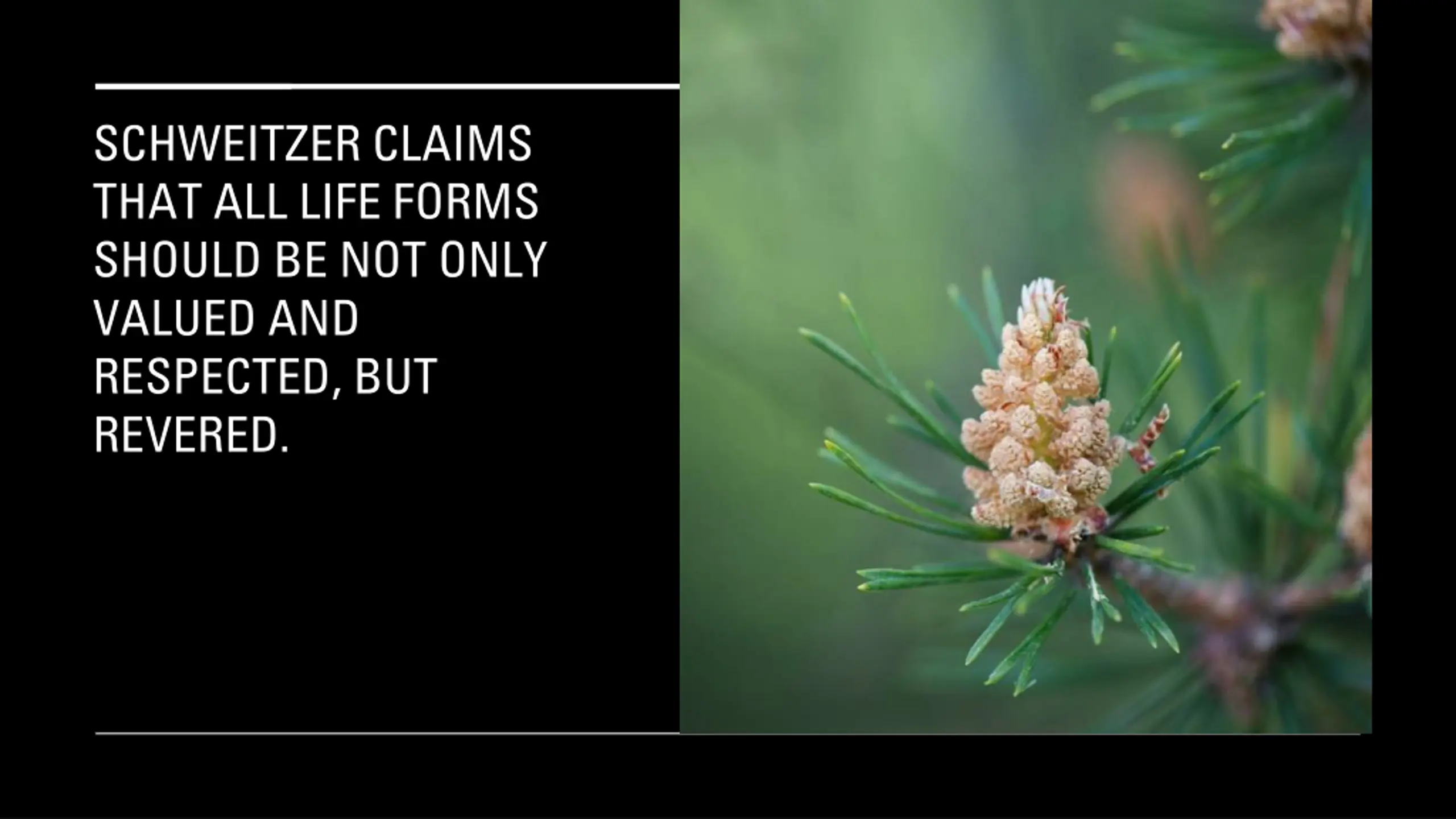 SCHWEITZER CLAIMS THAT ALL LIFE FORMS SHOULD BE NOT ONLY VALUED AND RESPECTED, BUT REVERED.