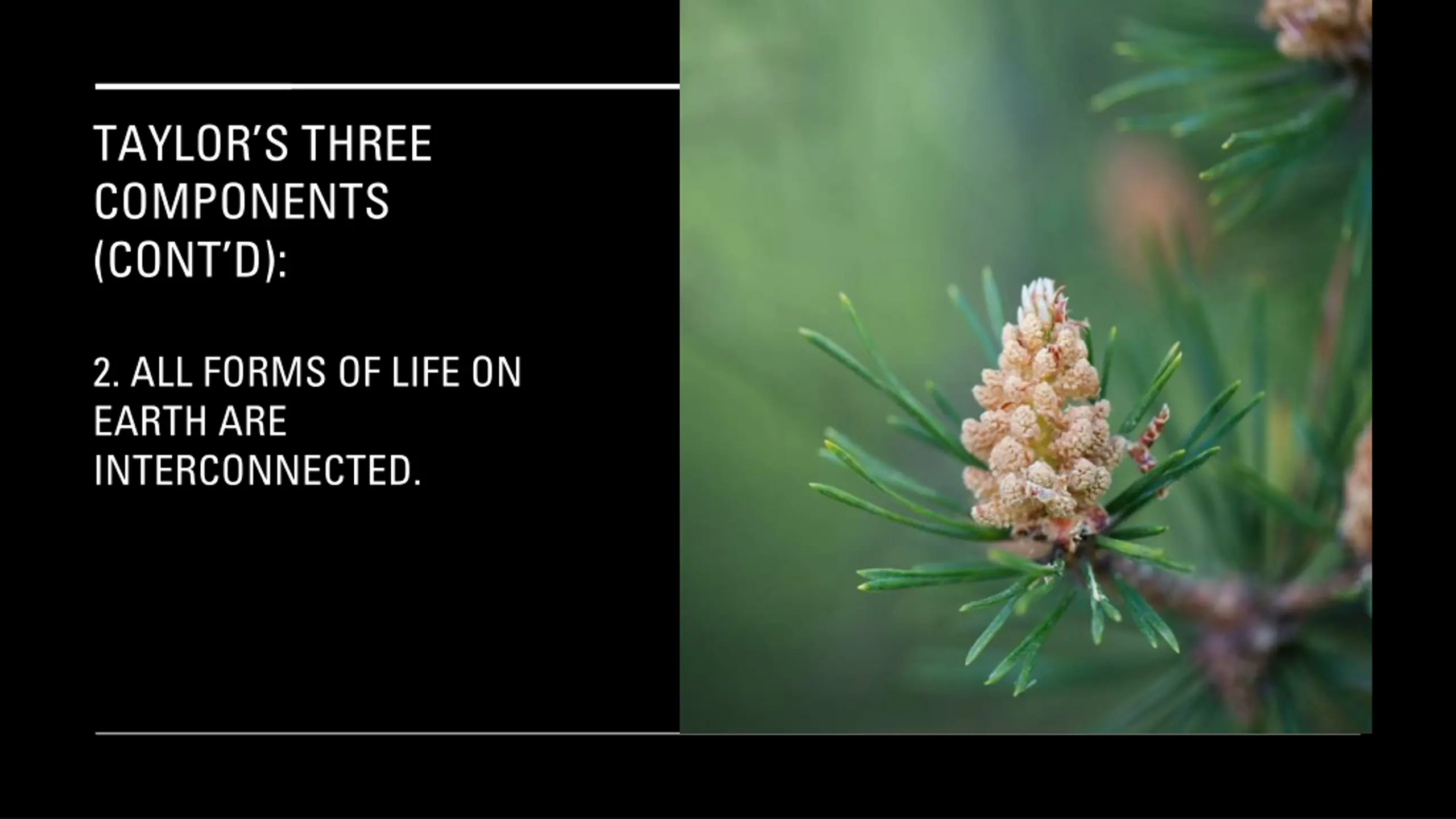 TAYLORS THREE COMPONENTS (CONT D): 2. ALL FORMS OF LIFE ON EARTH ARE INTERCONNECTED.