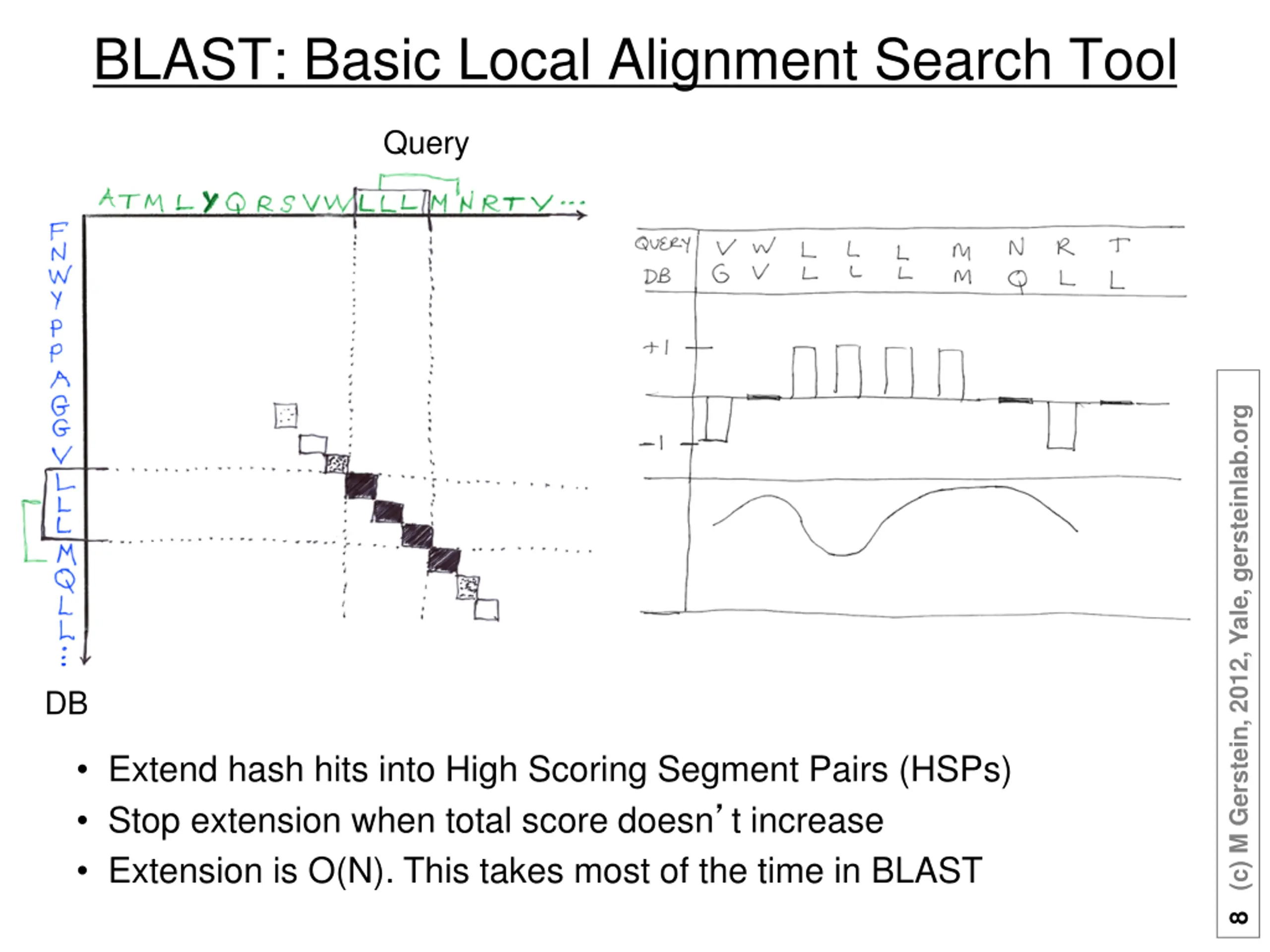 Join together query lookups into diagonals and then do a full alignment 6 (c) M Gerstein, 2012, Yale, gersteinlab.org (Adapted from D Brutlag)