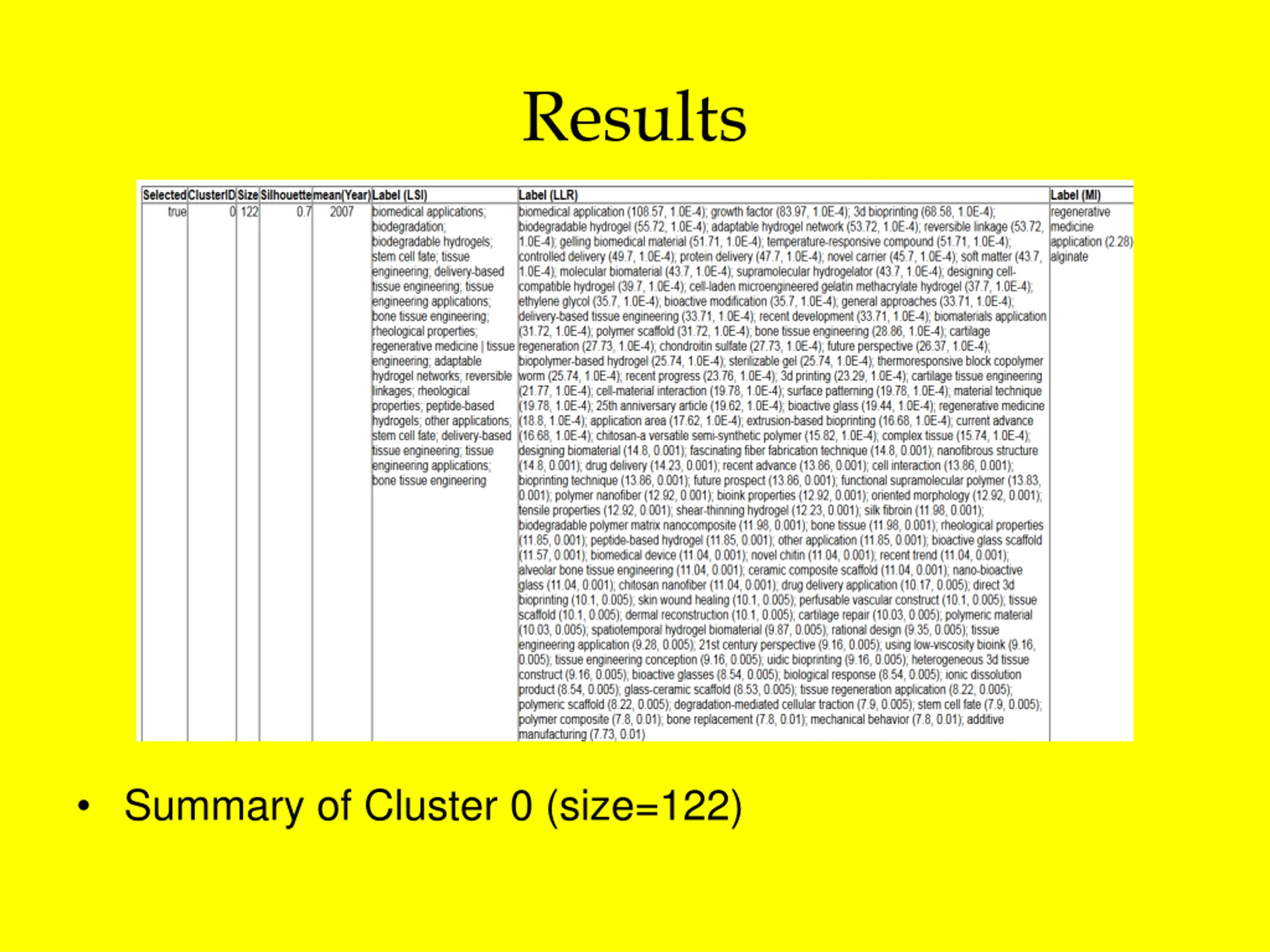 Conclusion This DCA produces highly reliable results in three of the seven sub-disciplines defined by Richards-Kortum: biomaterials and drug delivery; molecular and cellular engineering; and tissue engineering and regenerative medicine The top 13 clusters obtained do not represent the major areas of BME Visualization software can be used to support traditional experts' bibliographic surveys