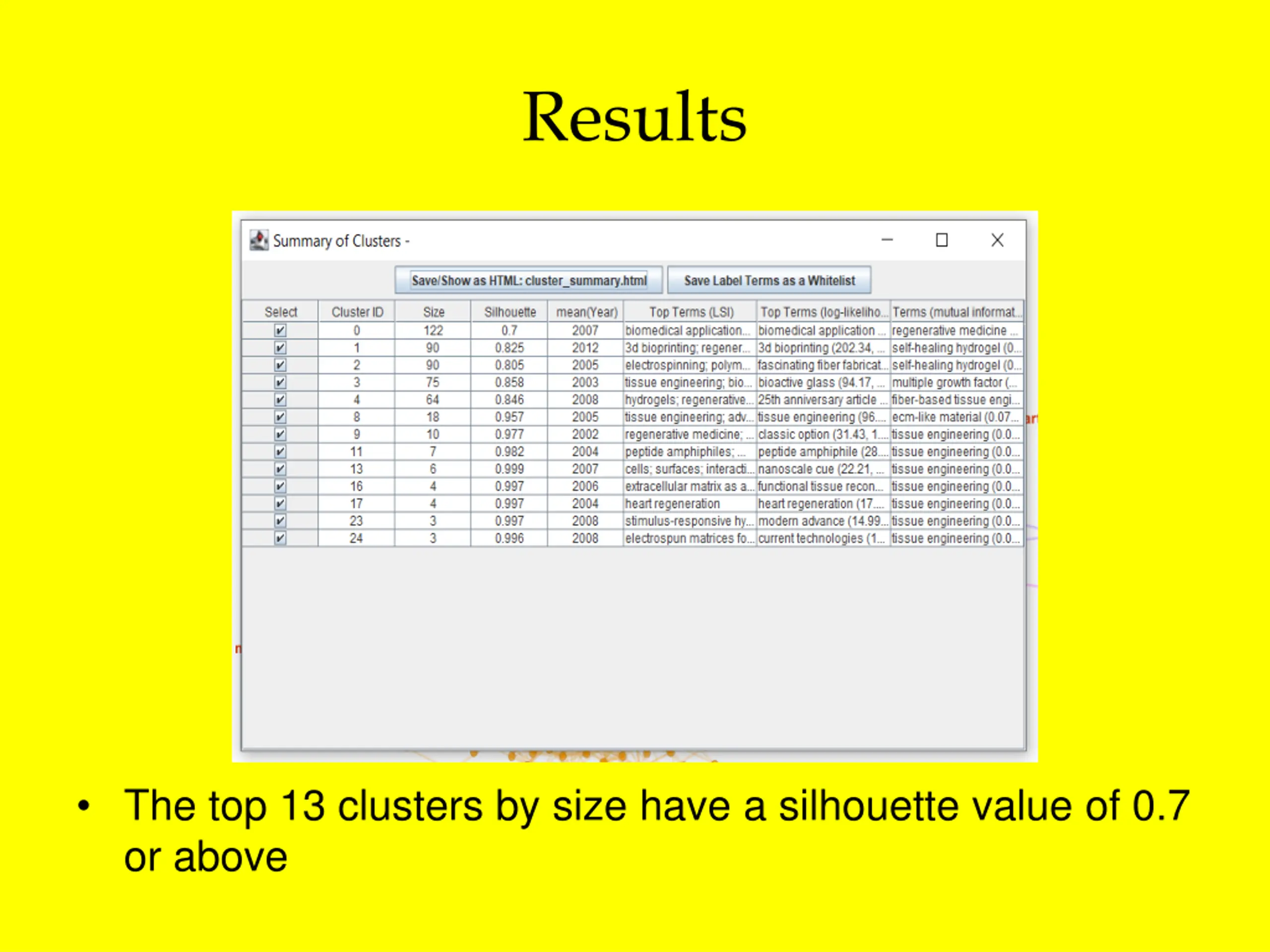Results The top 13 clusters by size have a silhouette value of 0.7 or above