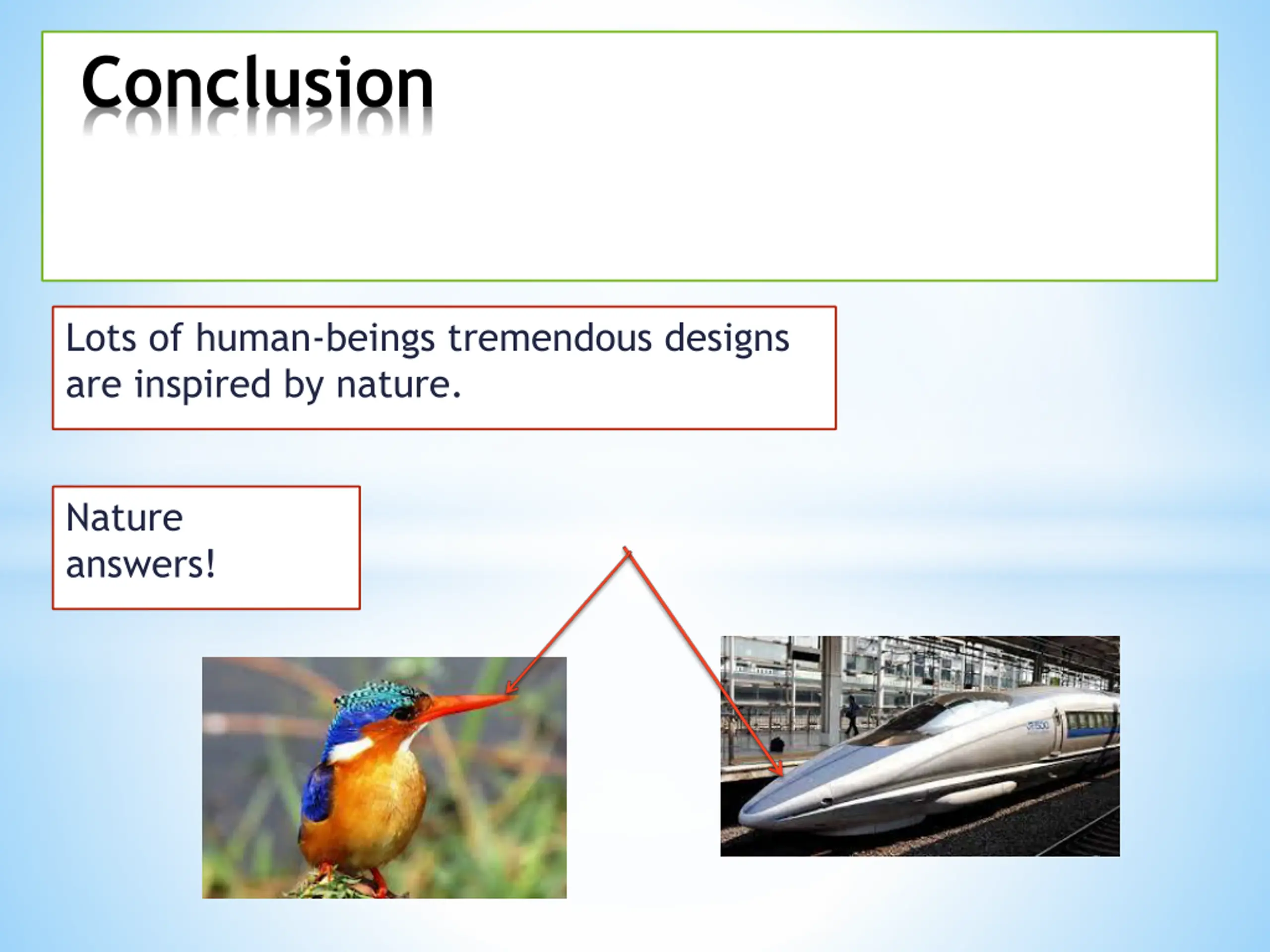 Conclusion Lots of human-beings tremendous designs are inspired by nature. Nature answers!