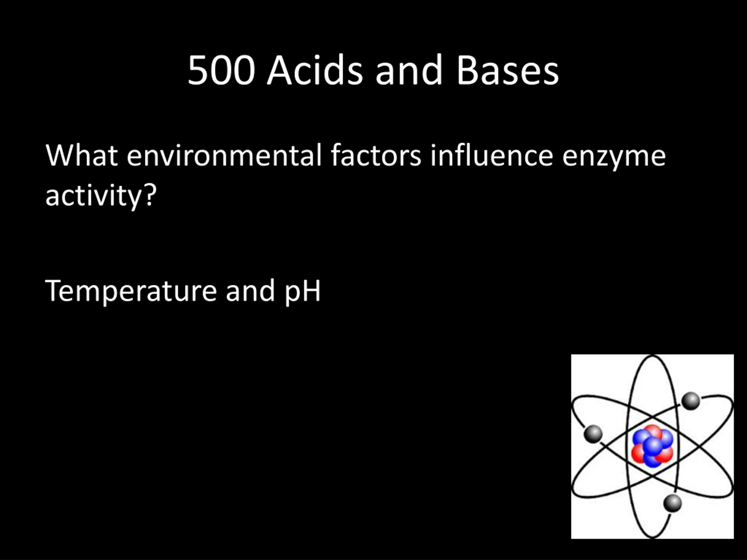 500 Acids and Bases What environmental factors influence enzyme activity? Temperature and pH