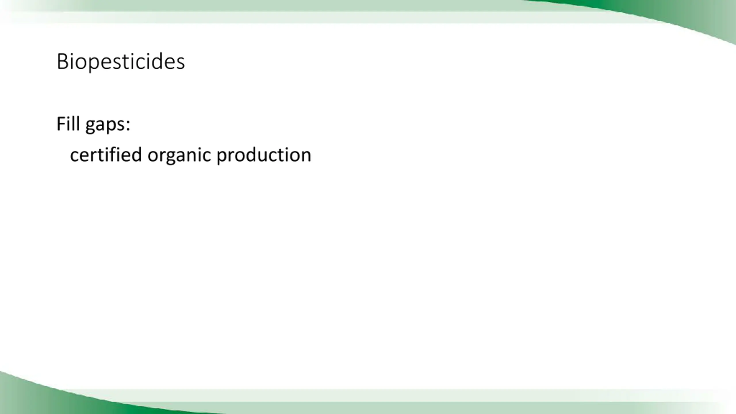 Biopesticides Fill gaps: certified organic production