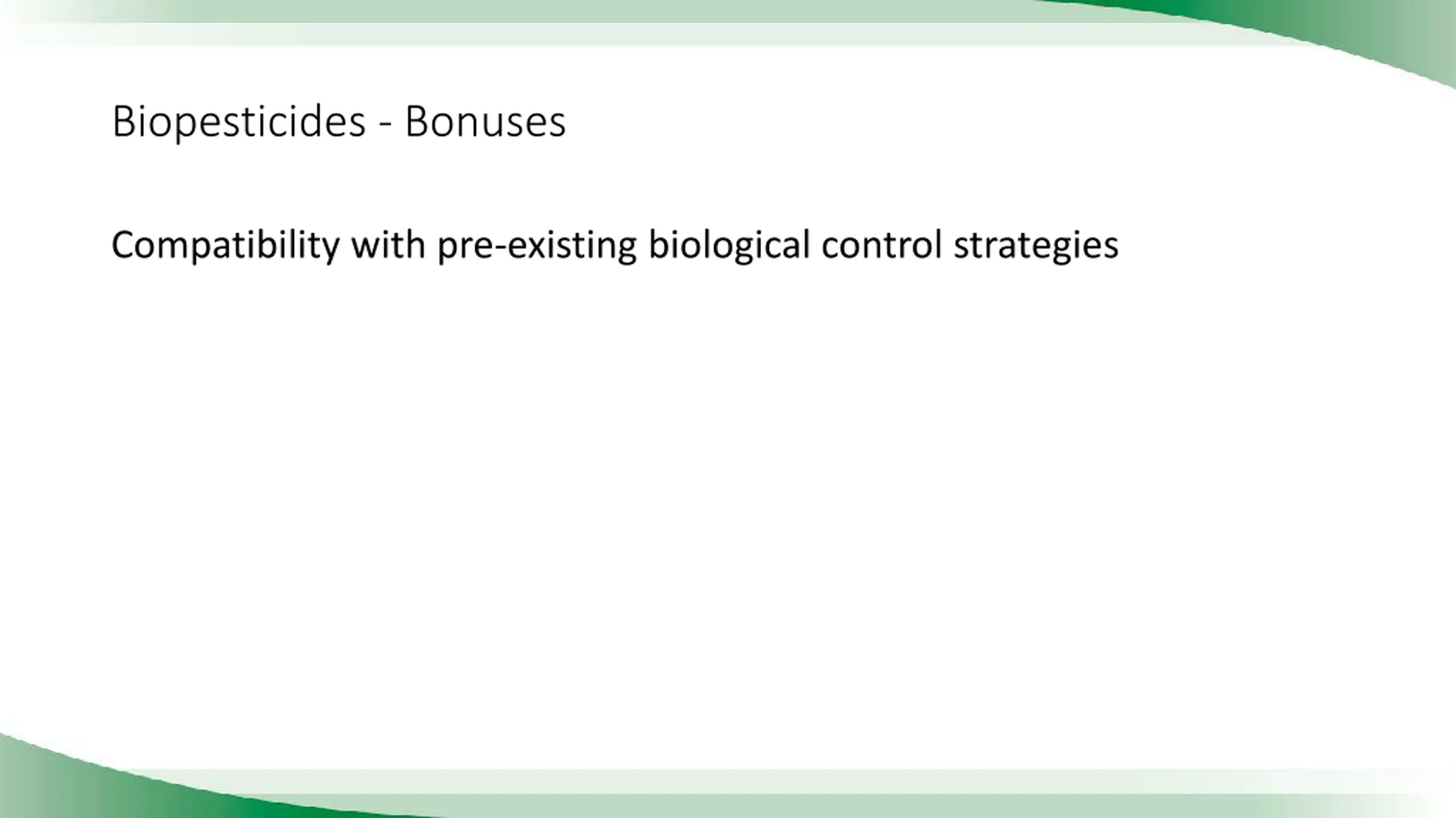 Biopesticides - Bonuses Compatibility with pre-existing biological control strategies