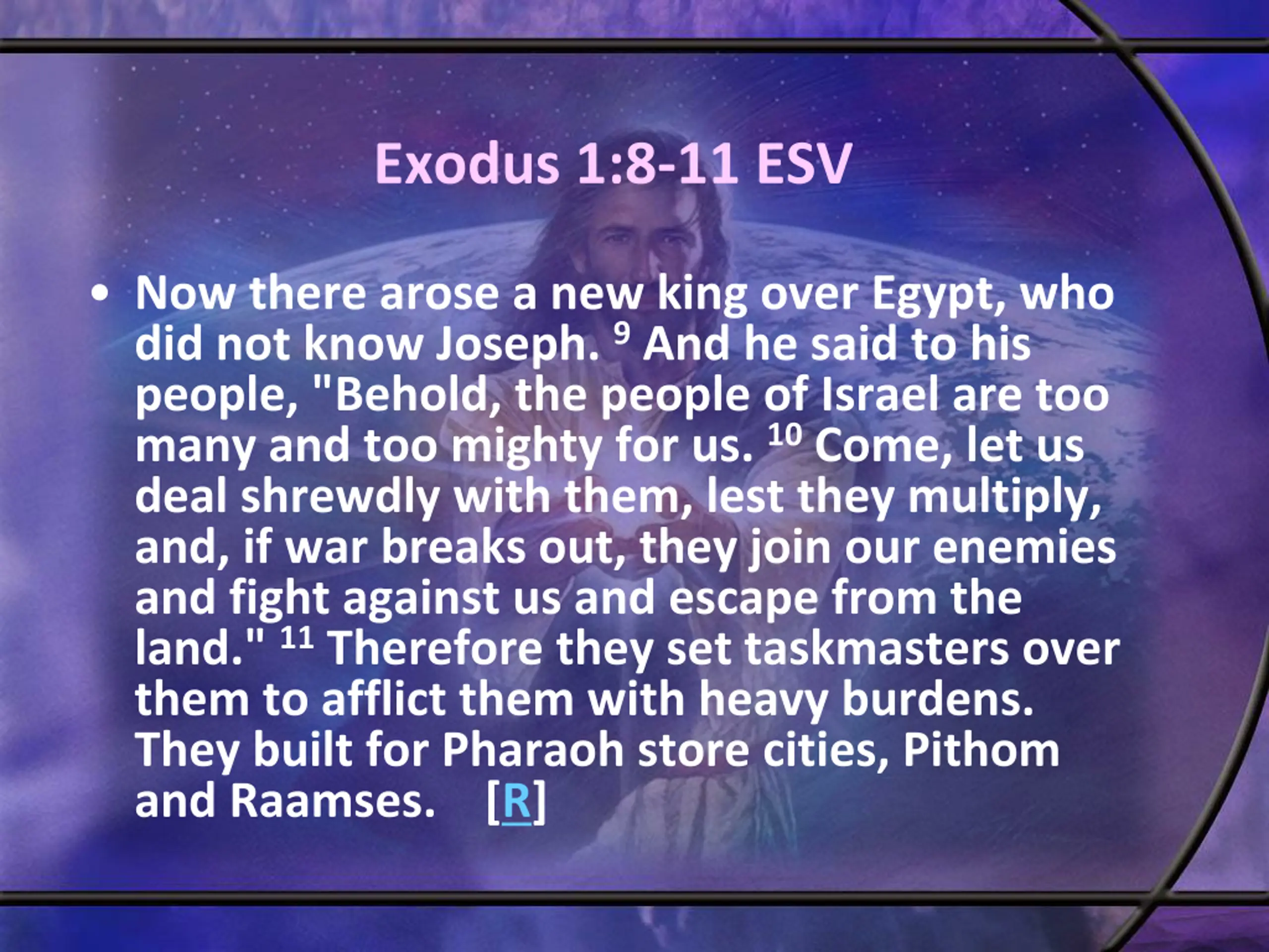 Exodus 1:8-11 ESV Now there arose a new king over Egypt, who did not know Joseph. 9And he said to his people, "Behold, the people of Israel are too many and too mighty for us. 10Come, let us deal shrewdly with them, lest they multiply, and, if war breaks out, they join our enemies and fight against us and escape from the land." 11Therefore they set taskmasters over them to afflict them with heavy burdens. They built for Pharaoh store cities, Pithom and Raamses. [R]