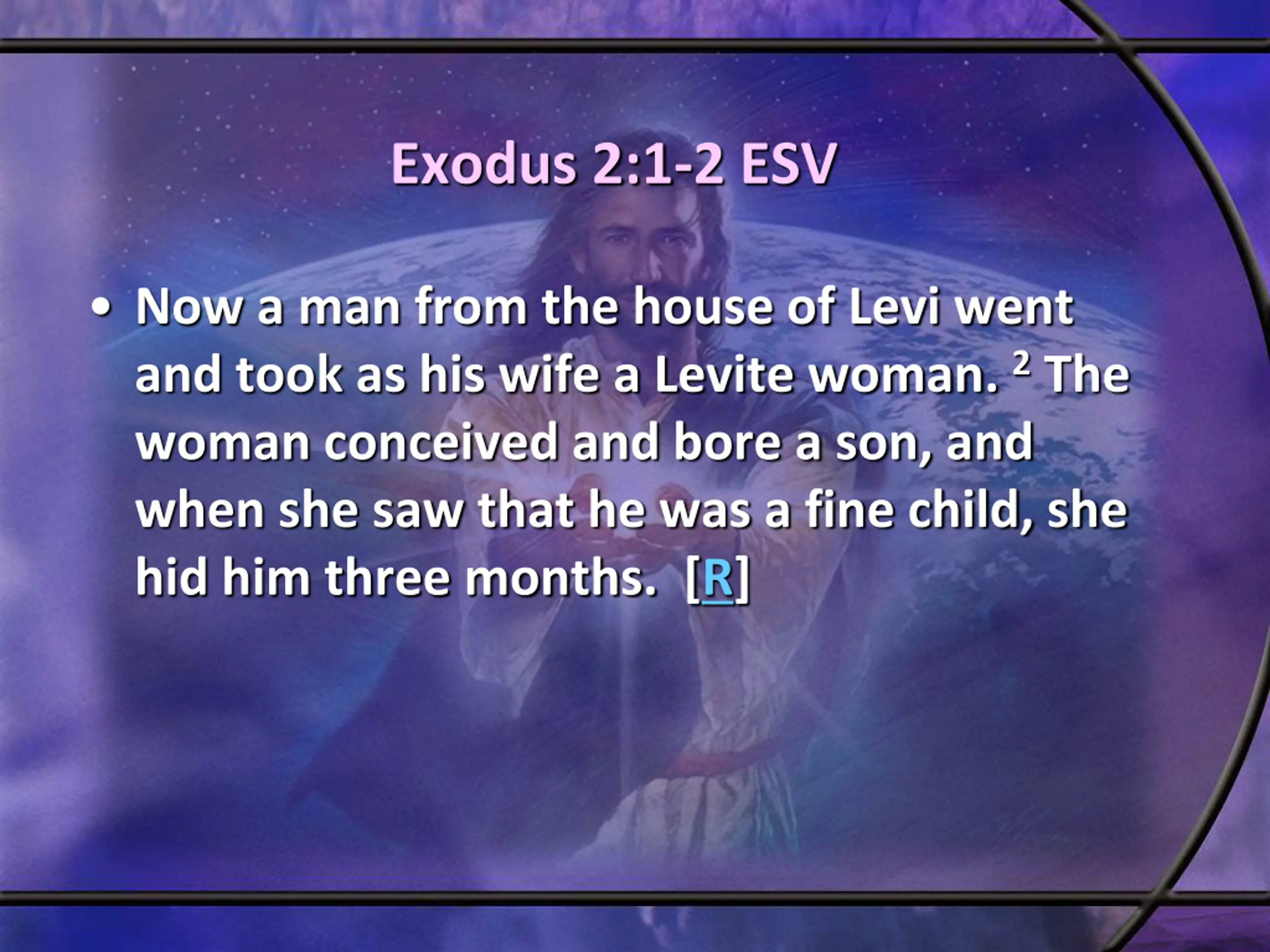 Exodus 2:1-2 ESV Now a man from the house of Levi went and took as his wife a Levite woman. 2The woman conceived and bore a son, and when she saw that he was a fine child, she hid him three months. [R]