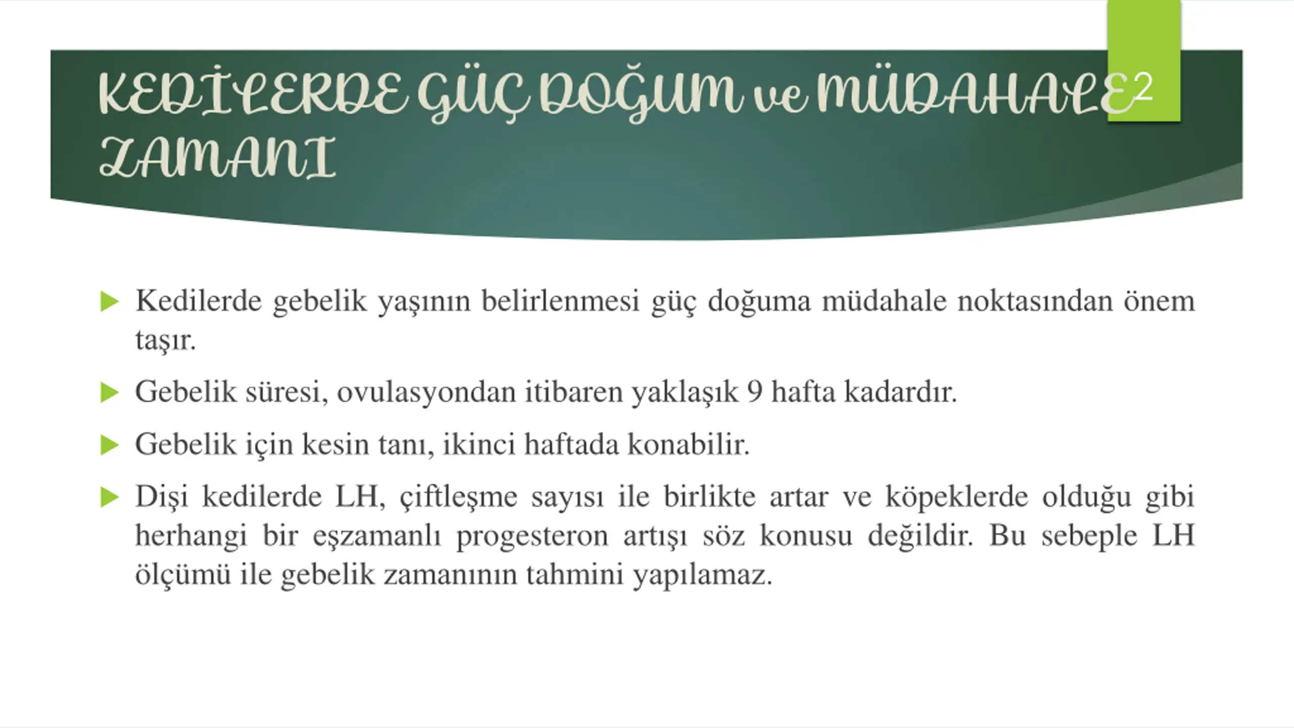 KEDLERDE G DOUM ve MDAHALE ZAMANI 2 Kedilerde gebelik ya n n belirlenmesi g do uma m dahale noktas ndan nem ta r. Gebelik s resi, ovulasyondan itibaren yakla k 9 hafta kadard r. Gebelik i in kesin tan , ikinci haftada konabilir. Di i kedilerde LH, iftle me say s ile birlikte artar ve k peklerde oldu u gibi herhangi bir e zamanl progesteron art s z konusu de ildir. Bu sebeple LH l m ile gebelik zaman n n tahmini yap lamaz.