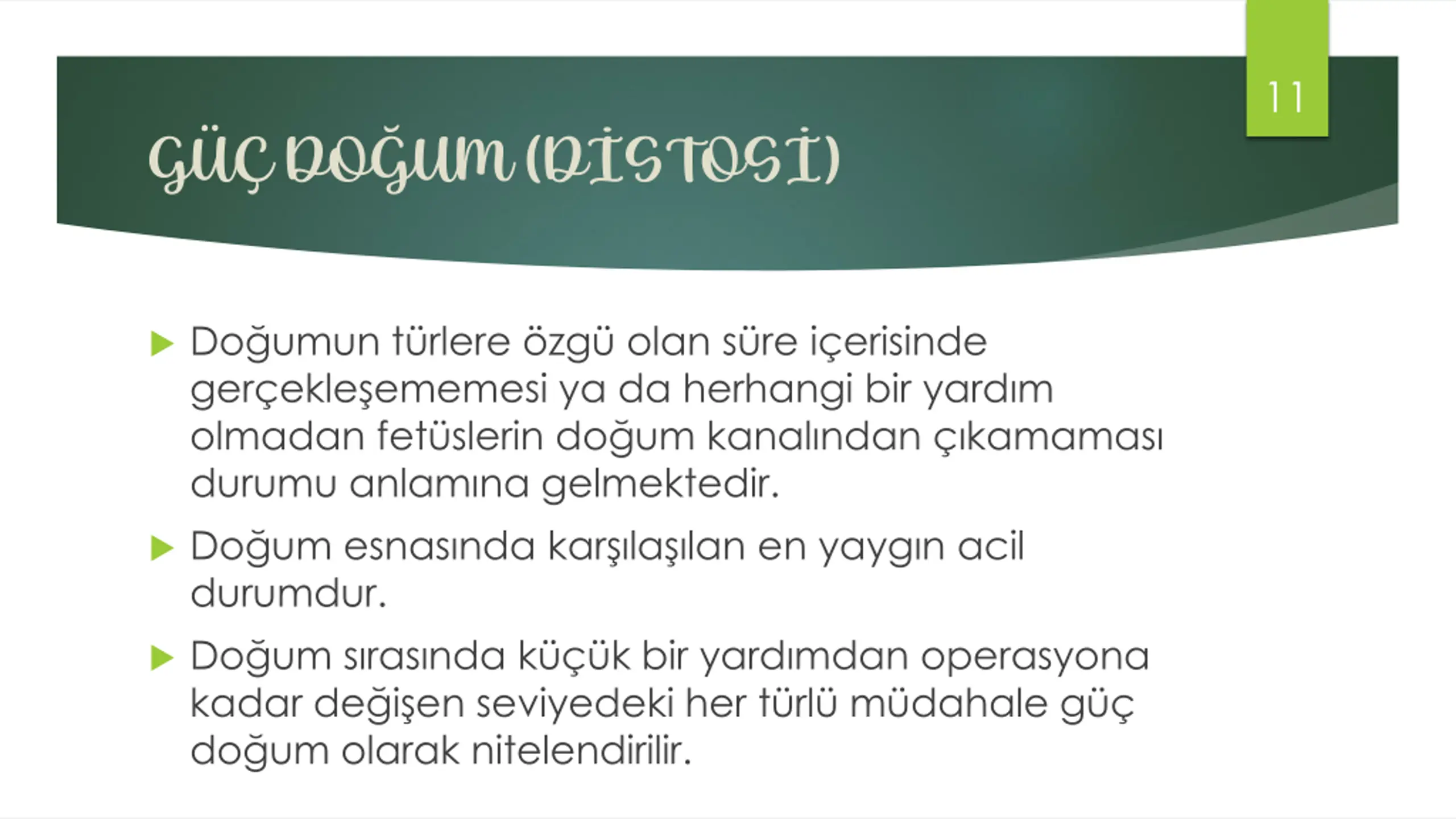 11 G DO UM (D STOS ) Do umun t rlere zg olan s re i erisinde ger ekle ememesi ya da herhangi bir yard m olmadan fet slerin do um kanal ndan kamamas durumu anlam na gelmektedir. Do um esnas nda kar la lan en yayg n acil durumdur. Do um s ras nda k k bir yard mdan operasyona kadar de i en seviyedeki her t rl m dahale g do um olarak nitelendirilir.