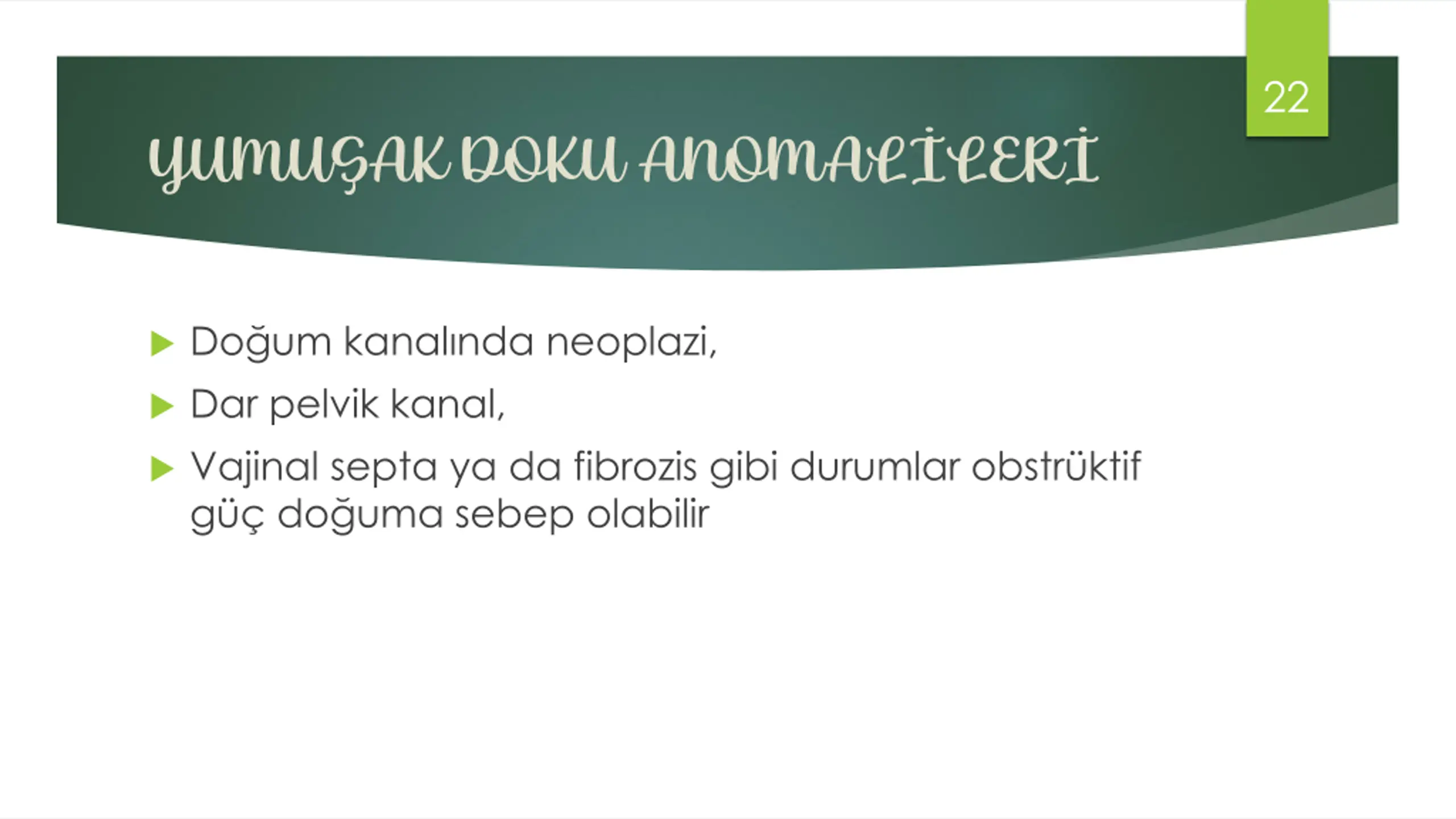 22 YUMU AK DOKU ANOMAL LER Do um kanal nda neoplazi, Dar pelvik kanal, Vajinal septa ya da fibrozis gibi durumlar obstr ktif g do uma sebep olabilir