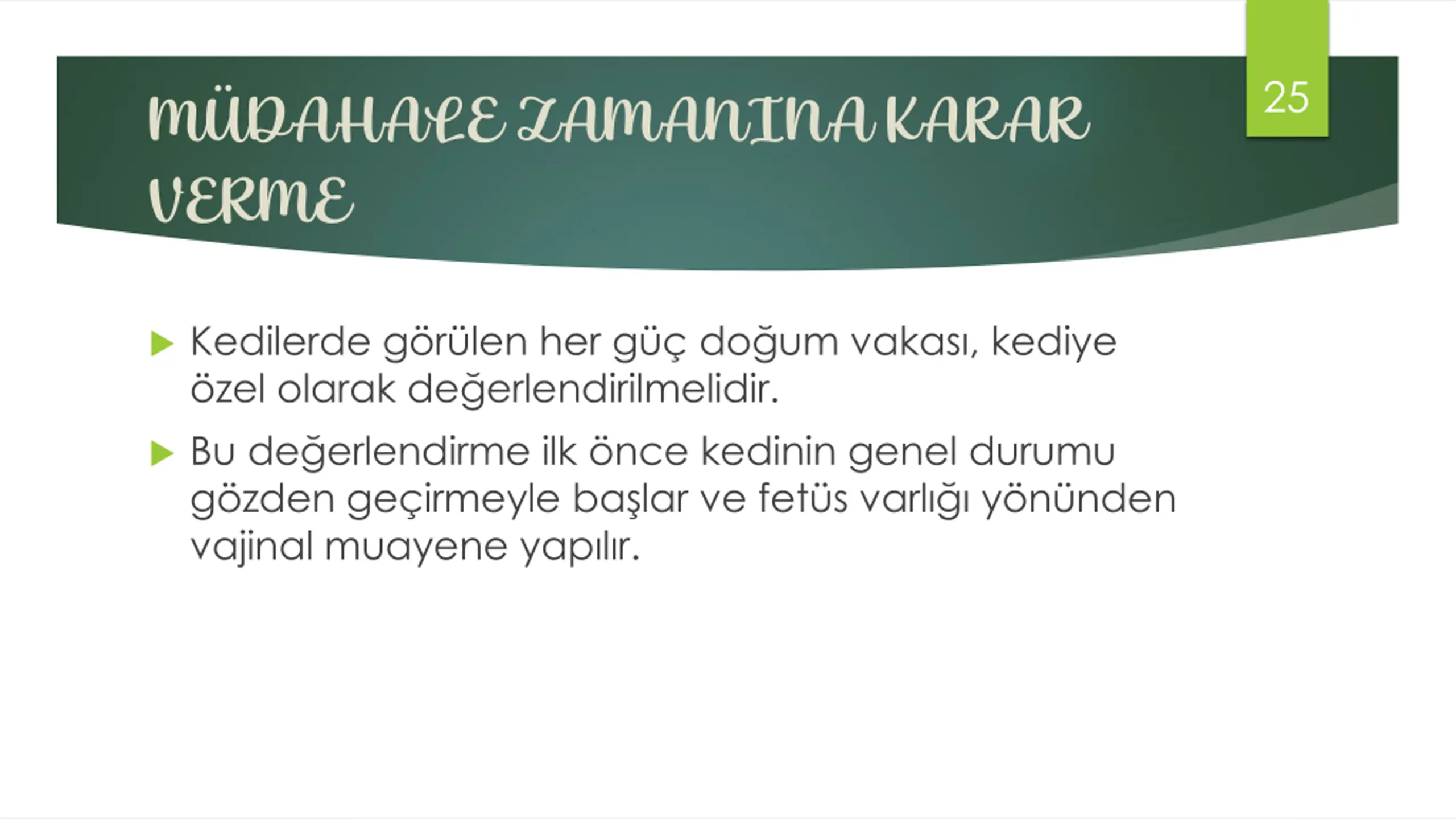 25 M DAHALE ZAMANINA KARAR VERME Kedilerde g r len her g do um vakas , kediye zel olarak de erlendirilmelidir. Bu de erlendirme ilk nce kedinin genel durumu g zden ge irmeyle ba lar ve fet s varl y n nden vajinal muayene yap l r.
