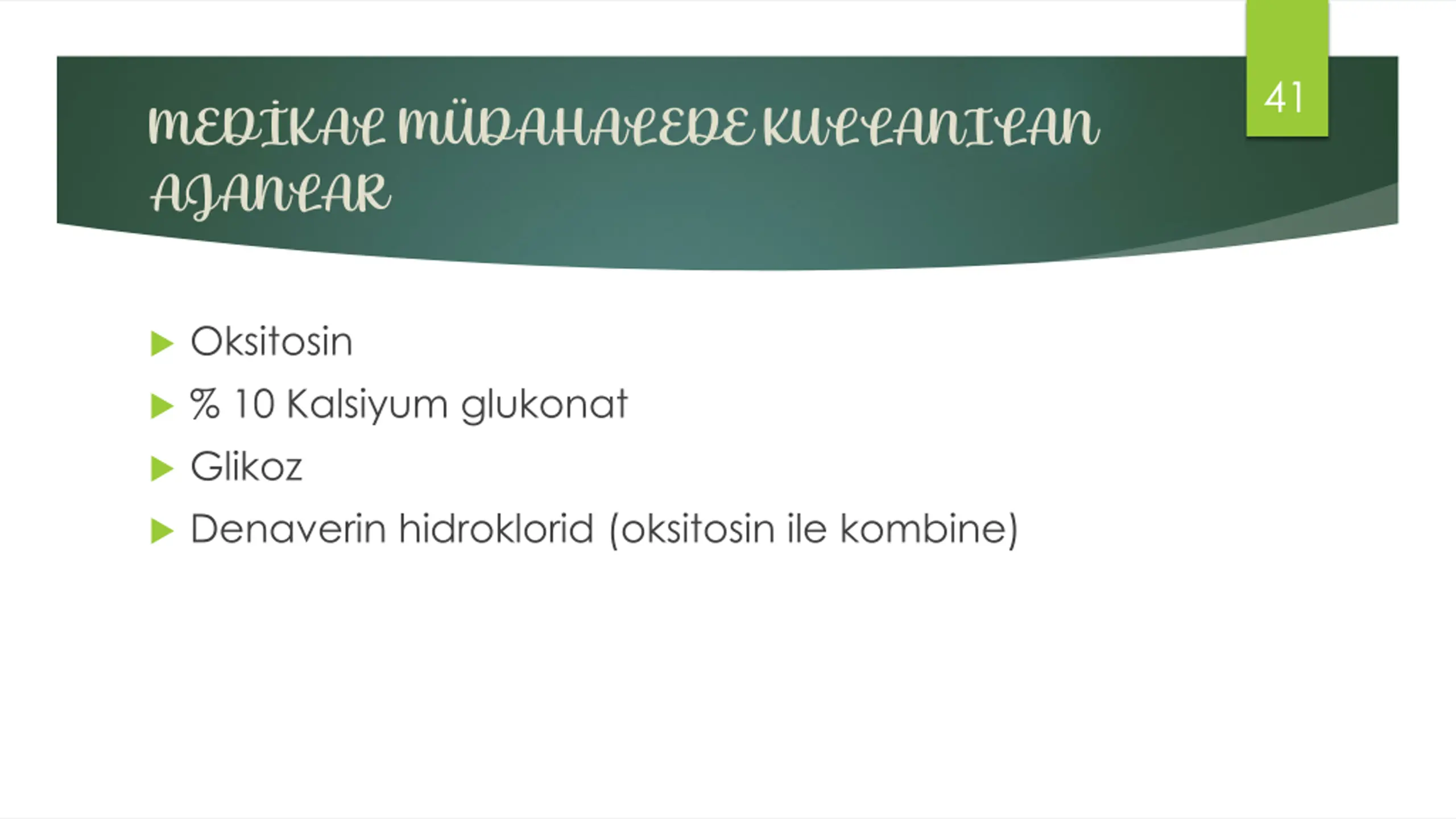 41 MED KAL M DAHALEDE KULLANILAN AJANLAR Oksitosin % 10 Kalsiyum glukonat Glikoz Denaverin hidroklorid (oksitosin ile kombine)