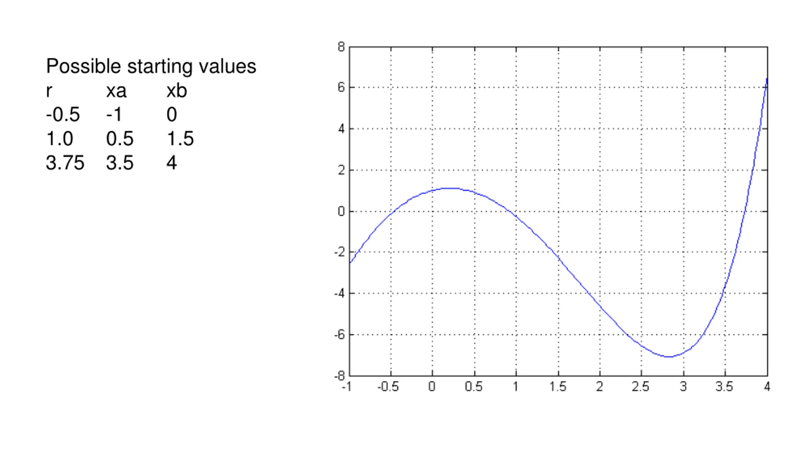 Possible starting values r xa -0.5 -1 1.0 0.5 3.75 3.5 xb 0 1.5 4