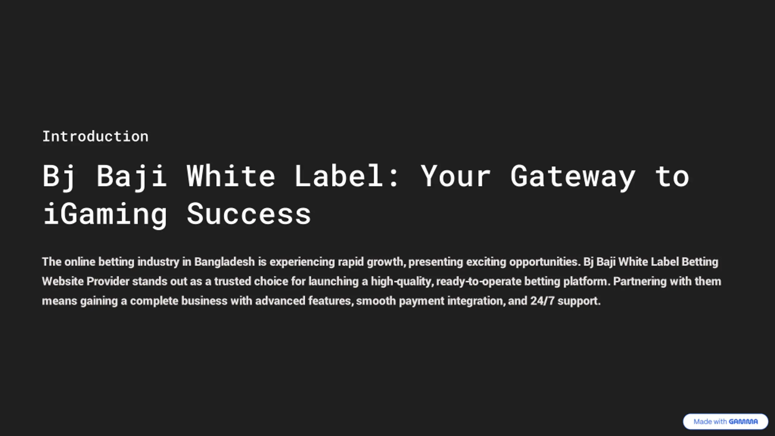 Introduction Bj Baji White Label: Your Gateway to iGaming Success The online betting industry in Bangladesh is experiencing rapid growth, presenting exciting opportunities. Bj Baji White Label Betting Website Provider stands out as a trusted choice for launching a high-quality, ready-to-operate betting platform. Partnering with them means gaining a complete business with advanced features, smooth payment integration, and 24/7 support. preencoded.png