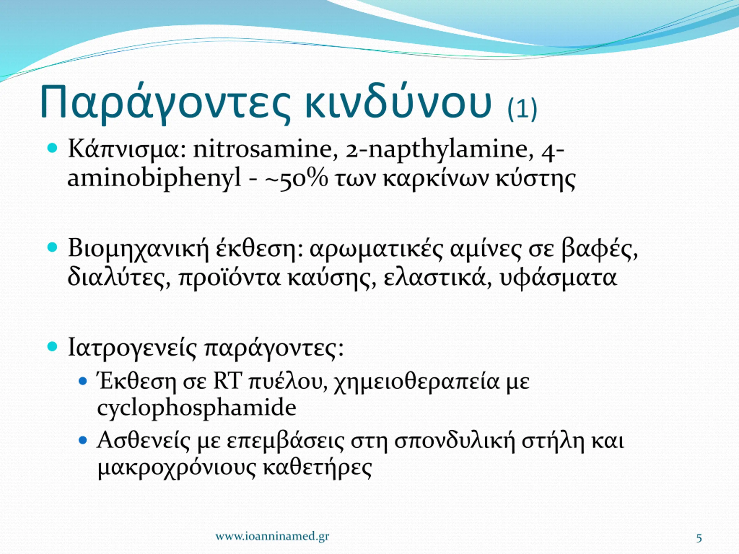 (1) : nitrosamine, 2-napthylamine, 4- aminobiphenyl - ~50% : , , , , : RT , cyclophosphamide www.ioanninamed.gr 5