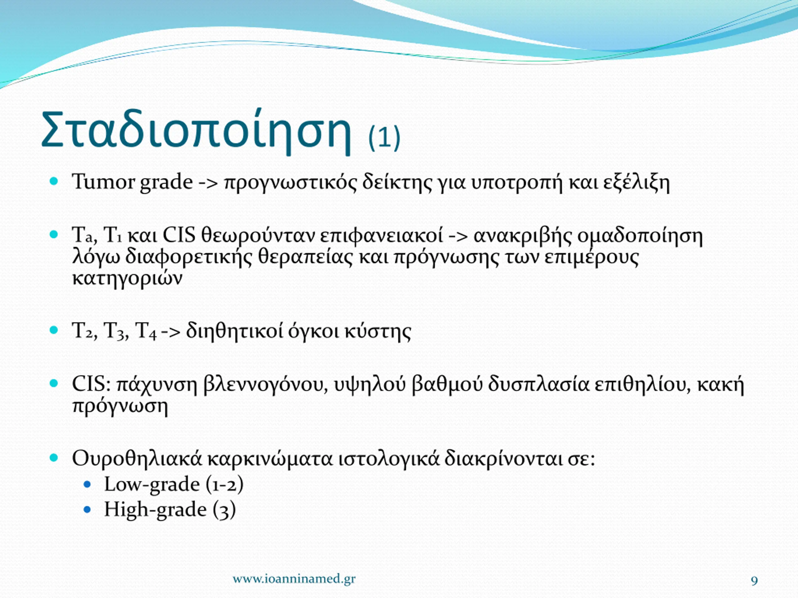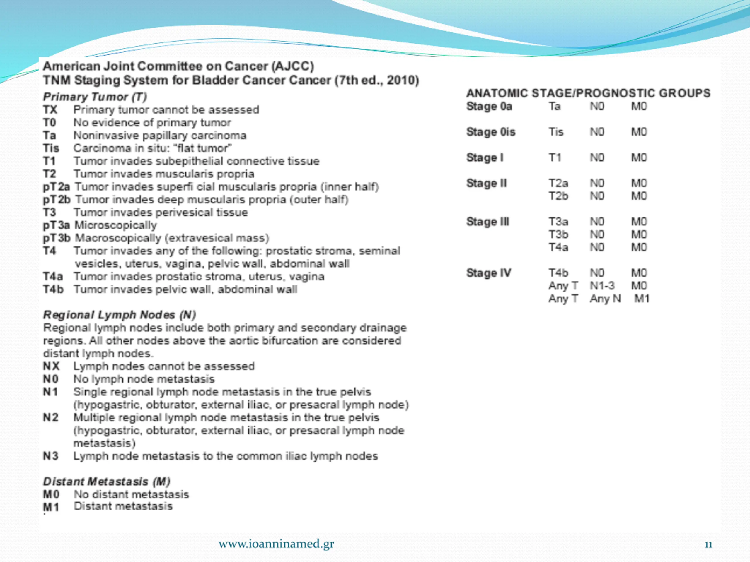 (1) Tumor grade -> Ta, T1 CIS -> 2, 3, 4 -> CIS: , , : Low-grade (1-2) High-grade (3) www.ioanninamed.gr 9