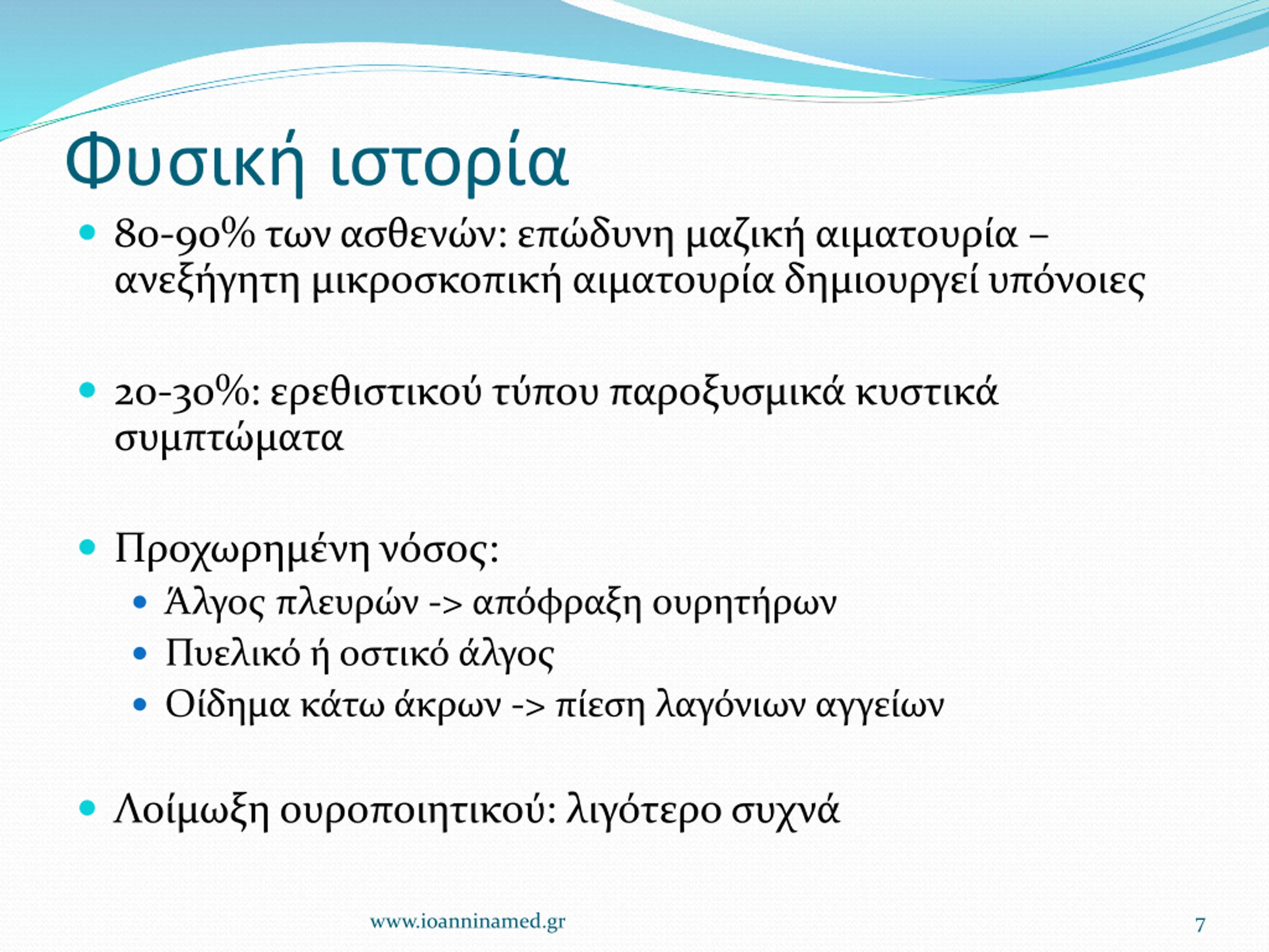 (2) : (p53) 17 -> high-grade Ca CIS p15 p16 9 -> low-grade Ca (Rb) EGFR erb-b2 p21 ras, c-myc c-jun www.ioanninamed.gr 6
