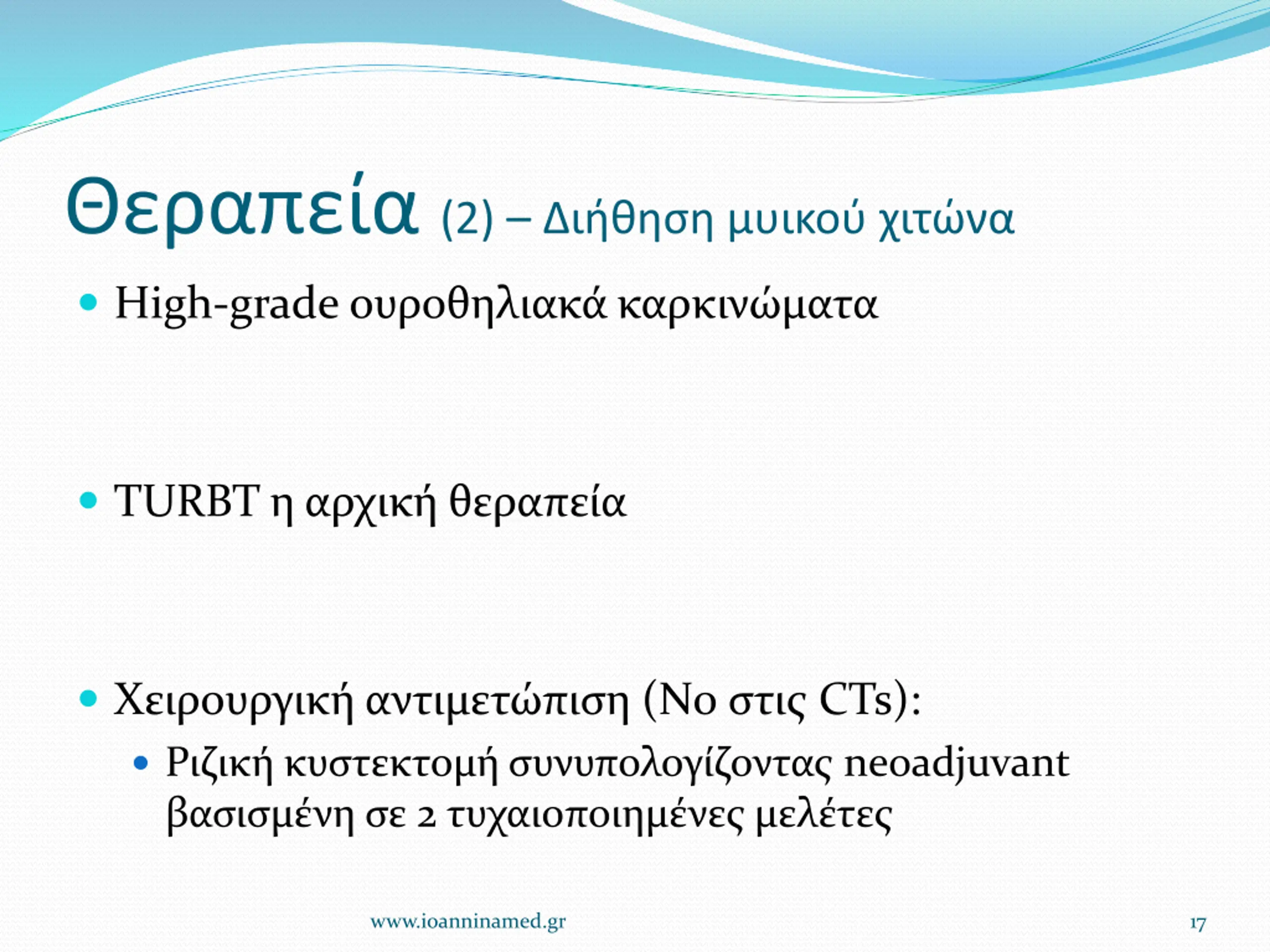 (2) High-grade TURBT (N0 CTs): neoadjuvant 2 www.ioanninamed.gr 17