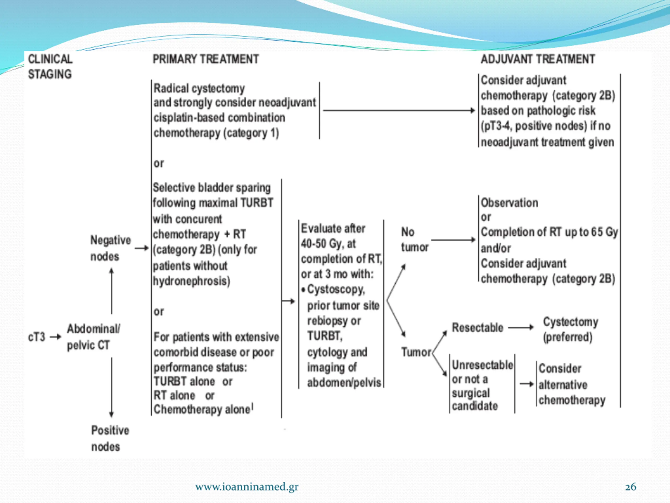 Neoadjuvant: PS>2 carboplatin taxane-based -> , neoadjuvant, adjuvant 2 CAP MVAC MVEC -> 3 cisplatin-based MVAC ( Grossman et al. ) gemcitabine- cisplatin (GC) - (<50% ) www.ioanninamed.gr 24