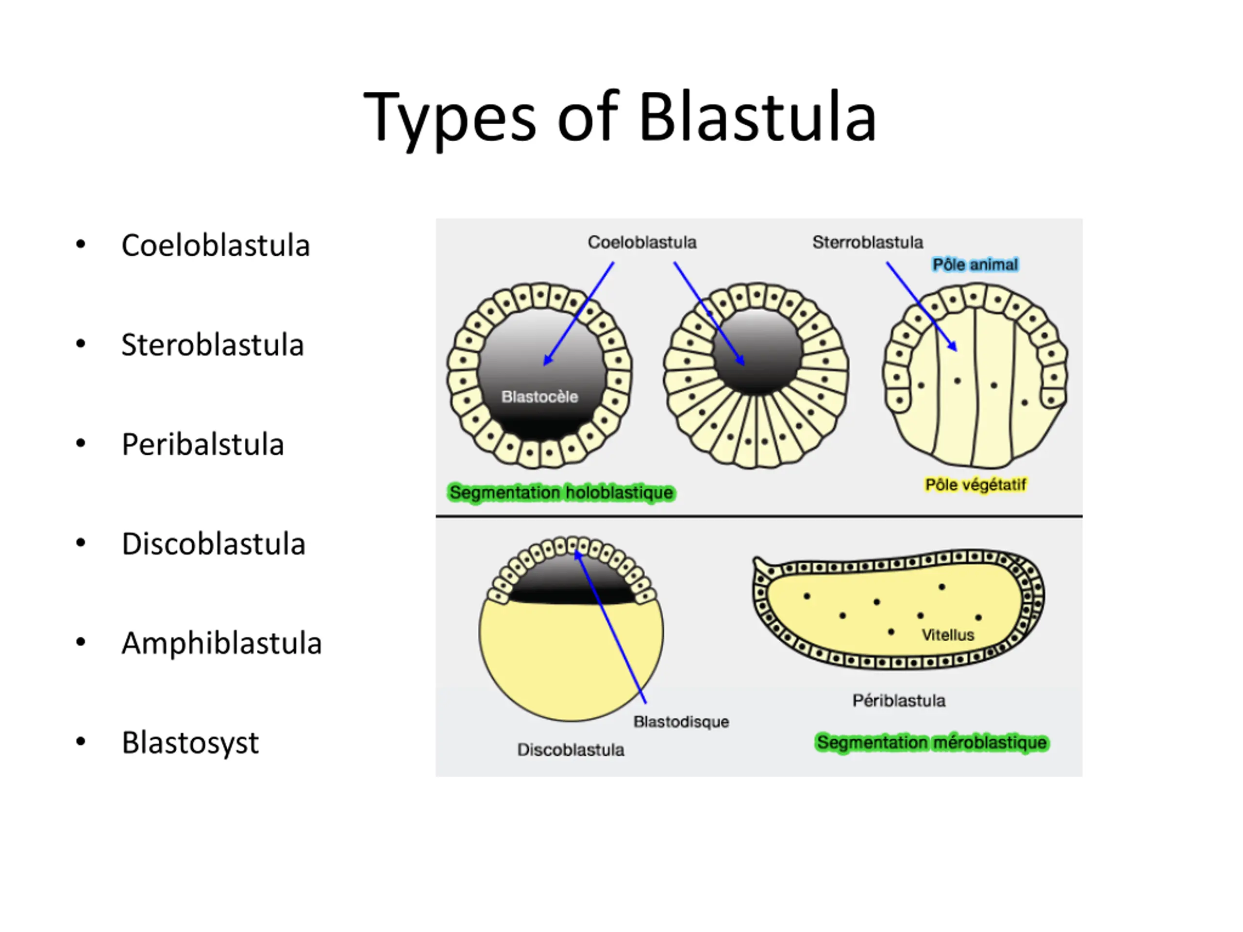 Types of Blastula Coeloblastula Steroblastula Peribalstula Discoblastula Amphiblastula Blastosyst
